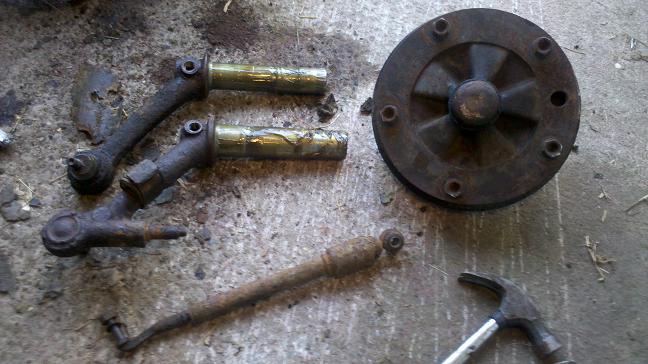 Jag har börjat pilla isär framvagnen för att fina till den med lite blästring och färg för så att den blir lite finare än vad den är nu
