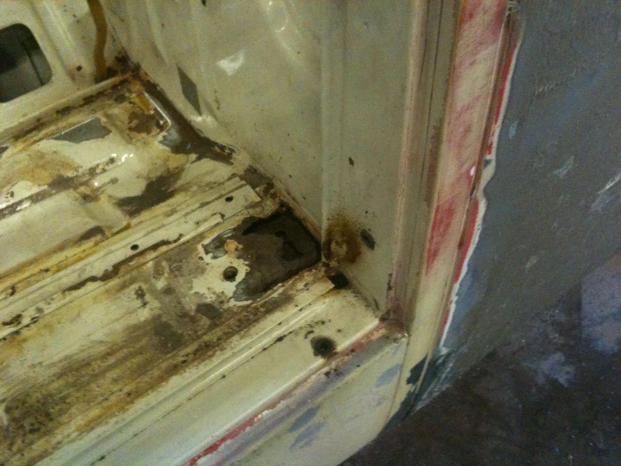 Så, första veckan på semestern gick till att tvätta bort färg med rotojet och 100gradigt vatten, laga den rost som var kvar och byta golvet inne i bussen, diverse hål efter den gamla campinginredningen. påbörja spacklingsjobbet och annat innan lack.