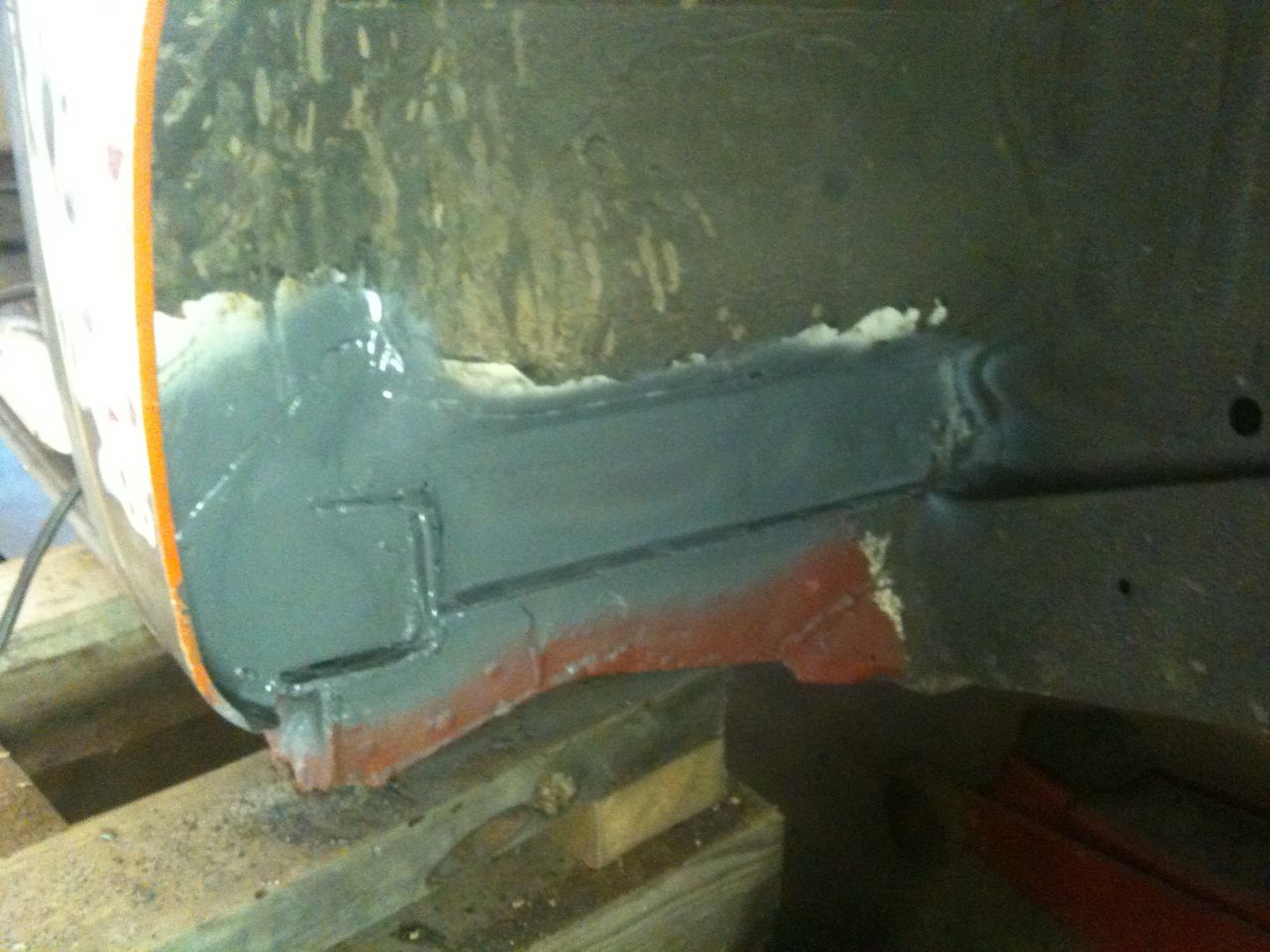 lagning vänster hjulhus, lade igen baljan för reservhjul och sedan till lackeraren för att få färg!