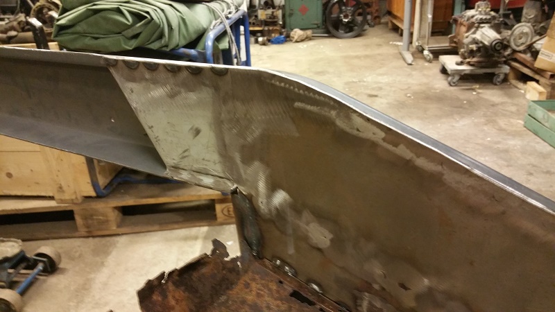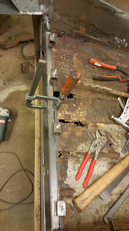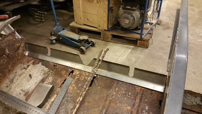 Ikväll så blev det mest måtta å kapa in lite plåtbitar, en liten stödbit svetsades fast i lådan så jag kunde anpassa avslutet på lådbotten riktigt, jag var tvungen att bocka om den lite så att den skulle lajna upp mot den främre Hatt-profien, lådbotten ska ju givetvis lappas ihop också, ska klura lite hur jag bäst får till rillorna...