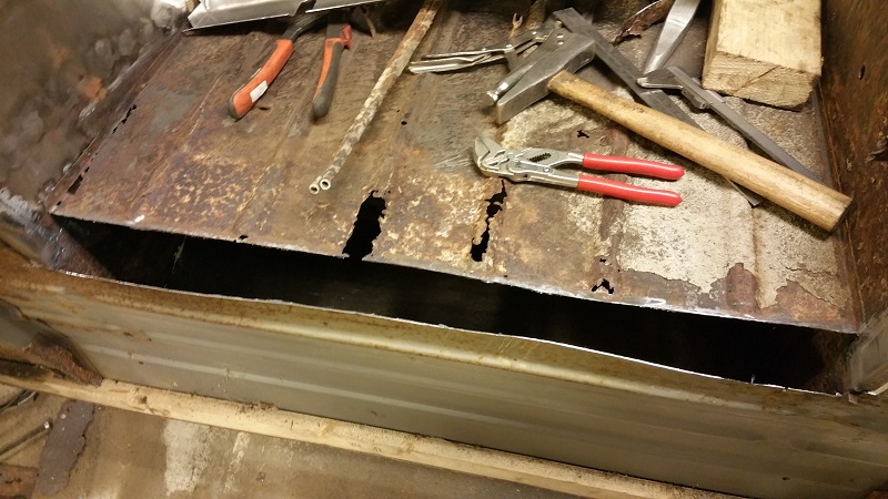 Kollade mest runt och funderade hur jag skulle göra med mellanväggen, den sitter lite ivägen för att det ska vara lätt att laga klart lådan, men att sprätta loss det som jag i ett senare skede ska ha som referenspunkt mot B-stolparna känns ju inte så bra? Eller jag kanske fegar för mycke? Men vi får se hur det blir, kanske är bäst att låta den sitta? Och gilla läget att man får lirka lite i hörnen av lådan så det i alla fall sitter ihop som det ska.