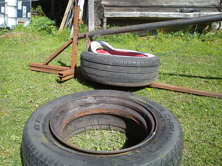 Ja hopp fredag kväll ingen däck snubbe vaken(dom sover när ingen är i verkstan har jag hört) men jag har ju lite däck hemma och jag har krängt däck förr allt från moppar till tröskor förhand så det var bara att köra på. Tänkte att det kanske finns någon som har nytta av att veta hur man gör ICQ/ad