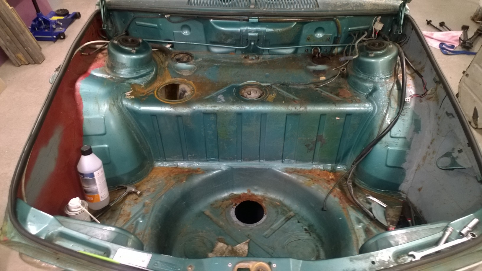 Den har en hel del gamla rostlagningar på de vanliga 412 ställena, jag bättrar på dessa lite och fixar lite fler lagningar.
