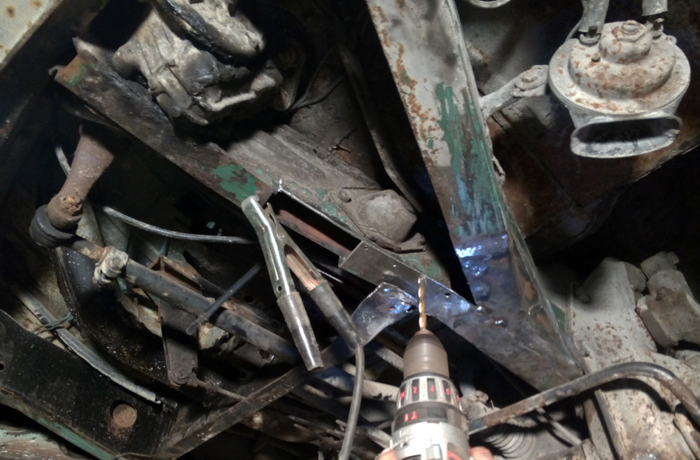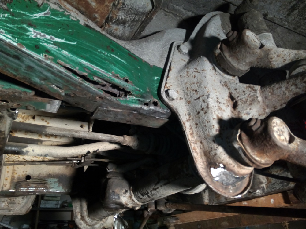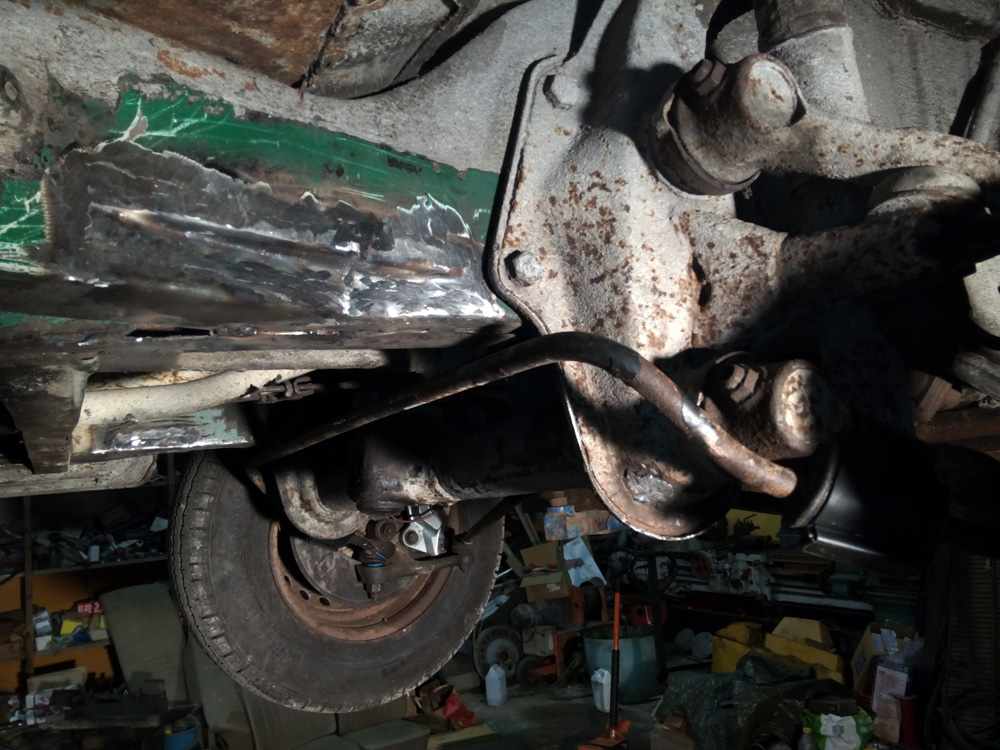 Ny ram med gamla pressningen rensplipade svetsar, nya gummin å byglar till krängningshämmaren som jag var tvungen att ta bort för att komma åt å svetsa, nya damasker och smörjnipplar till spindellederna, nya OK och bromsledningar mm mm