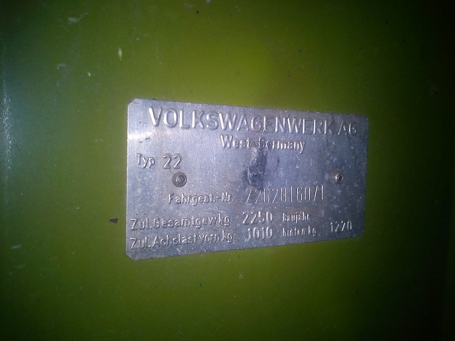 Anammade "lowangs tips och rev lite bakom passagerarsätet i mörest. Och sant å riktigt, visst satt det väl en liten blank plåtbit bakom ryggstödet. Men vad man kan utläsa av en rad siffror bara sådär utan kodnyckel var då alls inte mycket till framgångssaga för en analfabet som mej dåra. Att det var en Volkswagen förstås, men det visste jag ju redan. Även om det ändå var skönt att få det bekräftat. ICQ/ag Men men, det lär ju gå att kolla med någon hugad återförsäljare av färg och reservdelar till tyska supersportbilar med omnejd. Om inte annat kanske någon skön autist på ämnet här på forumet kan hjälpa mig att översätta?  ICQ/ad