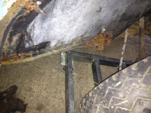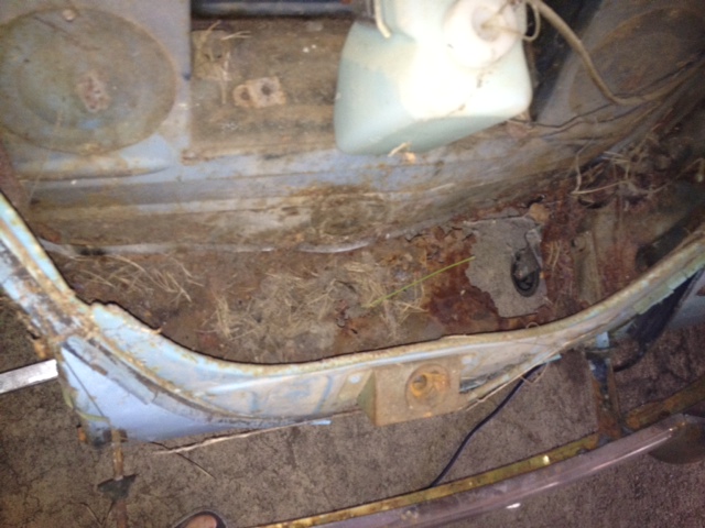 Den har rost lite överallt, trösklar platta, glasfiberskärmar bak (dom behåller jag gärna) och den saknar baklyktor, en framskärm och bakruta.  Den finns dock i registret fortfarande och jag står som ägare (så fort som transportstyrelsen gjort sitt jobb).