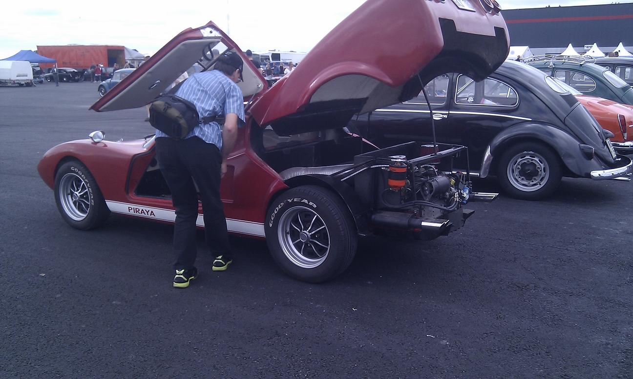 Idag har jag börjat med att passa in den "nya" karossen, bakdelens passform var bra över skärmarna och passar bra ihop med framdelen. Över taket var passformen mindre bra, bakdelen sticker upp ca en 1 cm över taket vilket inte ser något vidare ut. Anledningen till att den inte passar något vidare över taket beror på att man har fått en springa på ca 1 cm mellan formarna i framkant när man har gjutit bakdelen. Detta måste justeras och det blir till att kapa bort material så att det går att få till nivåerna för att sedan plasta ihop dem igen men först ska en ram och gångjärn till bakdelen byggas. Gångjärnen ska fästas i bakkant på bakdelen så att den öppnas bakåt så att motorn blir mer åtkomlig.