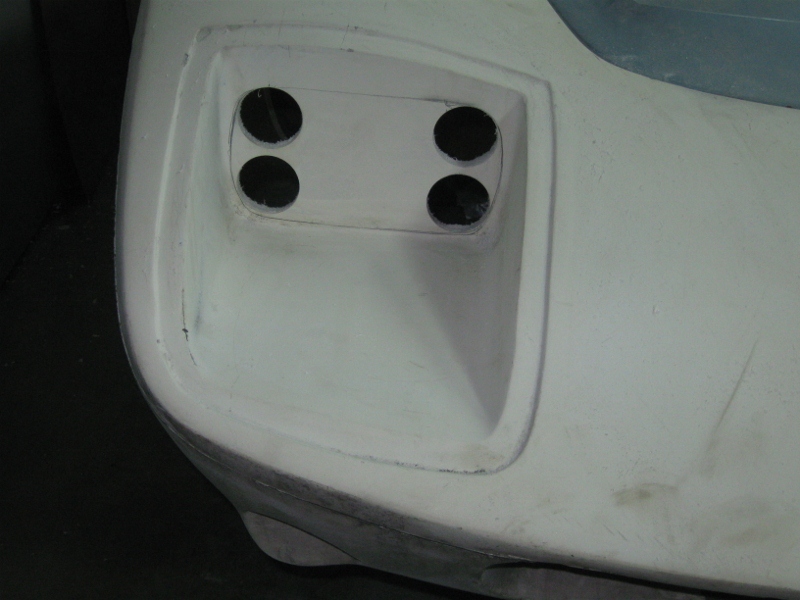 Idag sågade jag upp hålen för strålkastarna. Gjorde en pappmall, måttade, ritade av och sedan gick jag lös med hålsåg, vinkelslip och slipmaskin med slipstift. Använde ett par H4 insatser från en SAAB V4