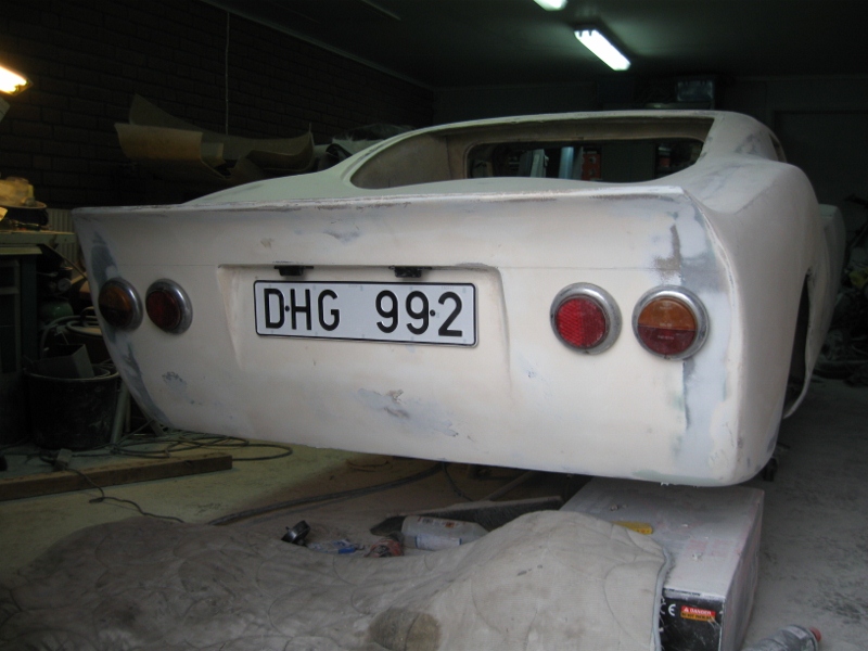 Har alltid tyckt att Opel Manta A baklysen passar mycket bra på Pirayan men jag har också haft en vision om att ett par mindre dubbla runda bakljus liknande de som RPB hade monterat på Pirayan som användes i det första reklambladet skulle passa bra. Har även tyckt att bakljusen som Porsche 904 har skulle sitta som handen i handsken, hittade faktiskt en uppsättning bakljus som är väldigt lika kanske till och med är samma fabrikat. Bakljusen är av fabrikat Hella och de jag fick tag i har suttit på en SAAB 95, de användes även på SAAB Sonett II/V4. Bakljusen fanns redan på 60-talet och passar bra till bilen då jag har som mål att bygga den med delar som fanns när den tillverkades. Har även beställt en ny registreringsskylt och tagit upp hål för belysning till denna. Har inte skruvat fast bakljusen på bilderna så därför ser de ut som de sitter lite snett.