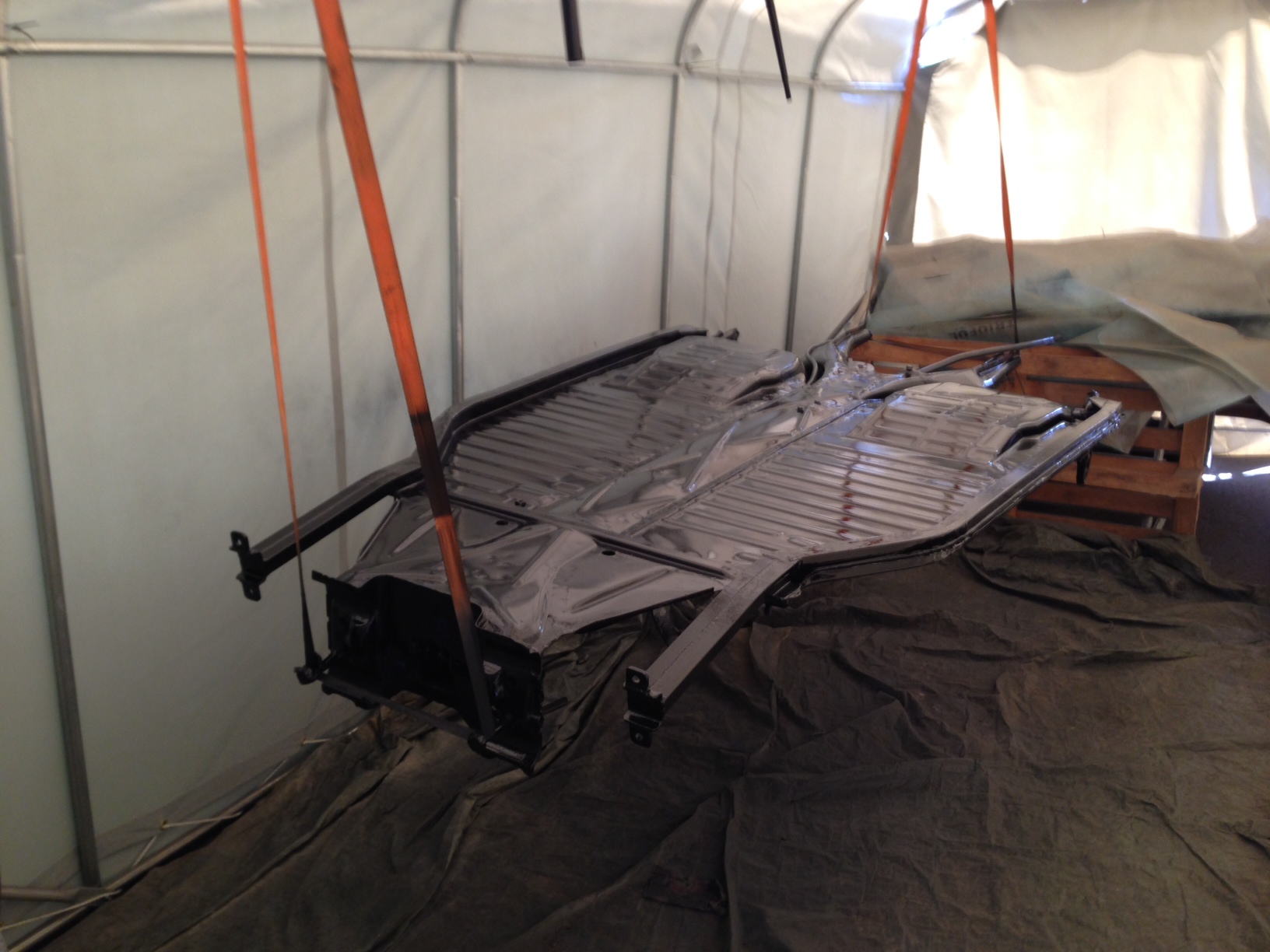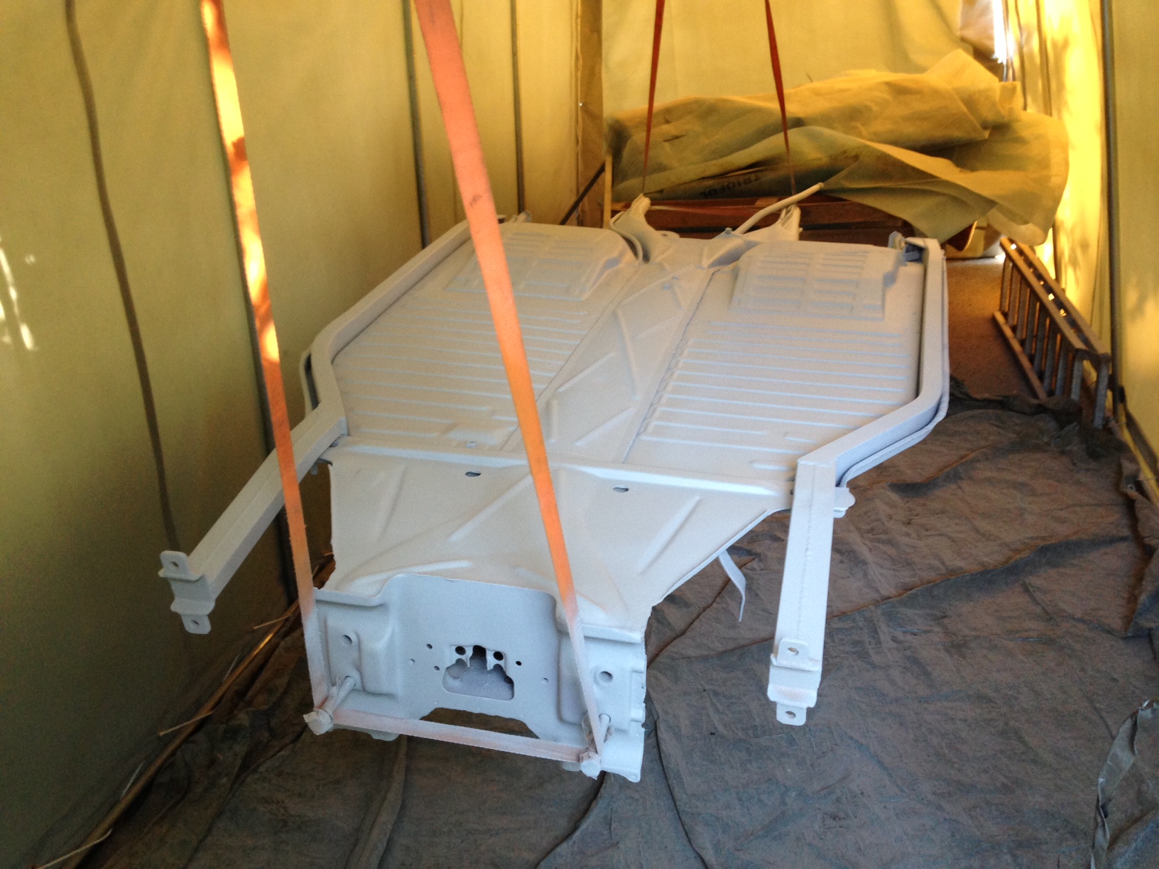 Lyfte av karossen och hängde upp plattan i fredags och grundlackerade den, på fredags kvällen så kittade jag alla skarvar.