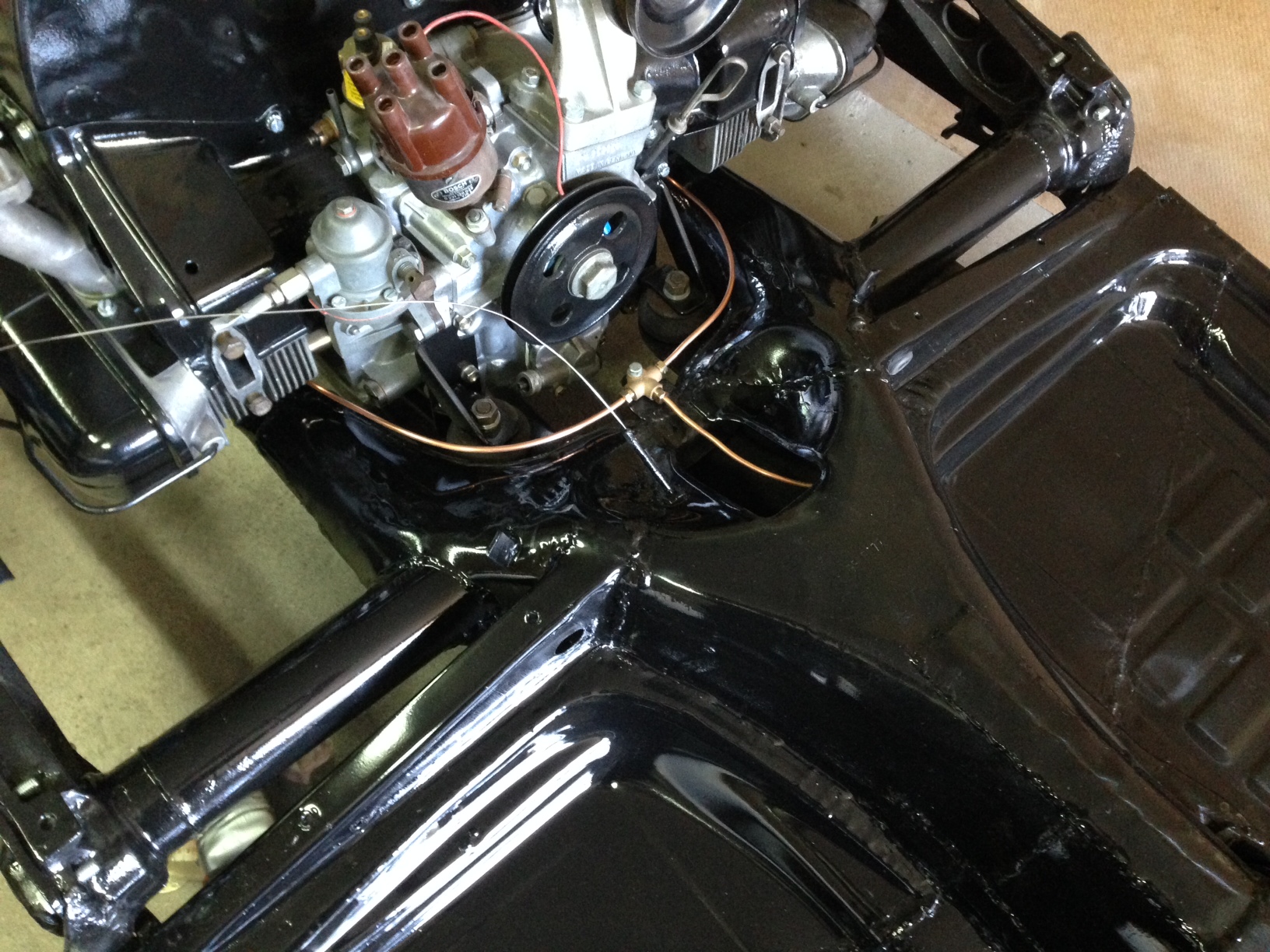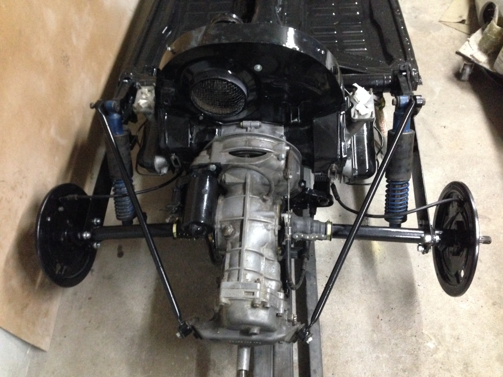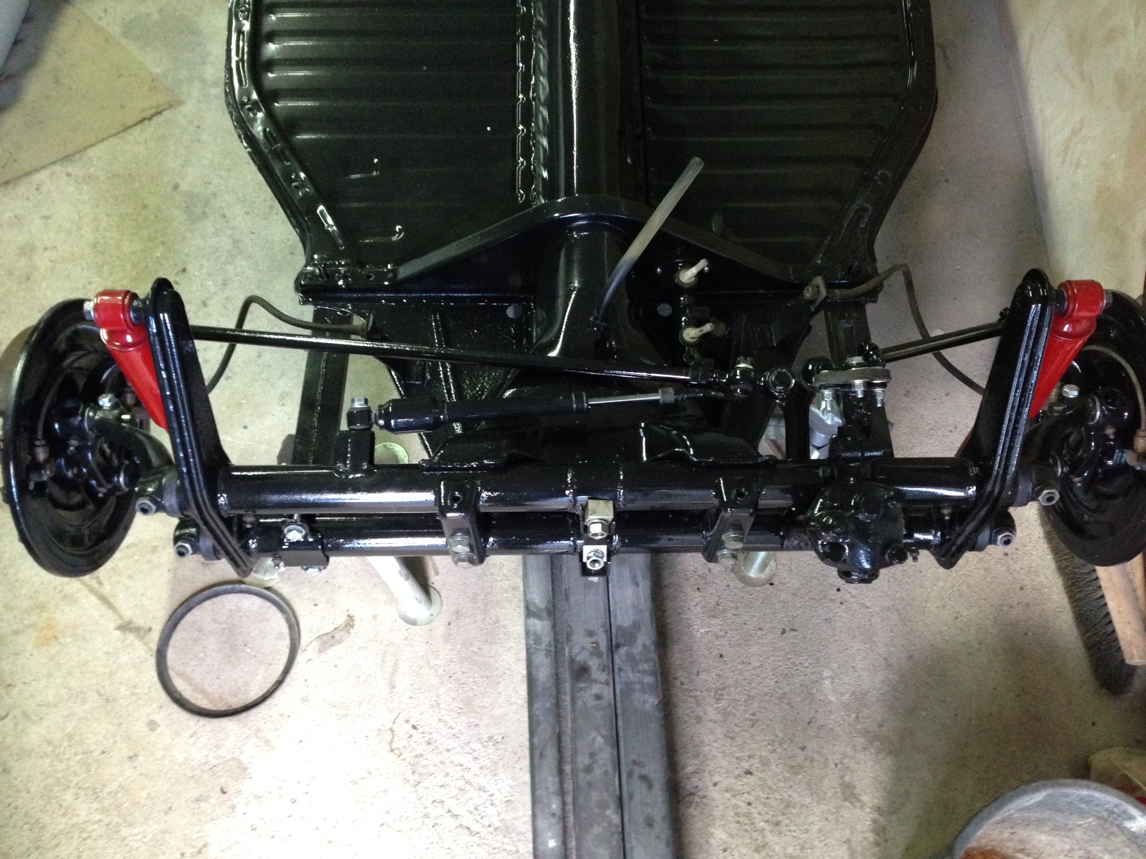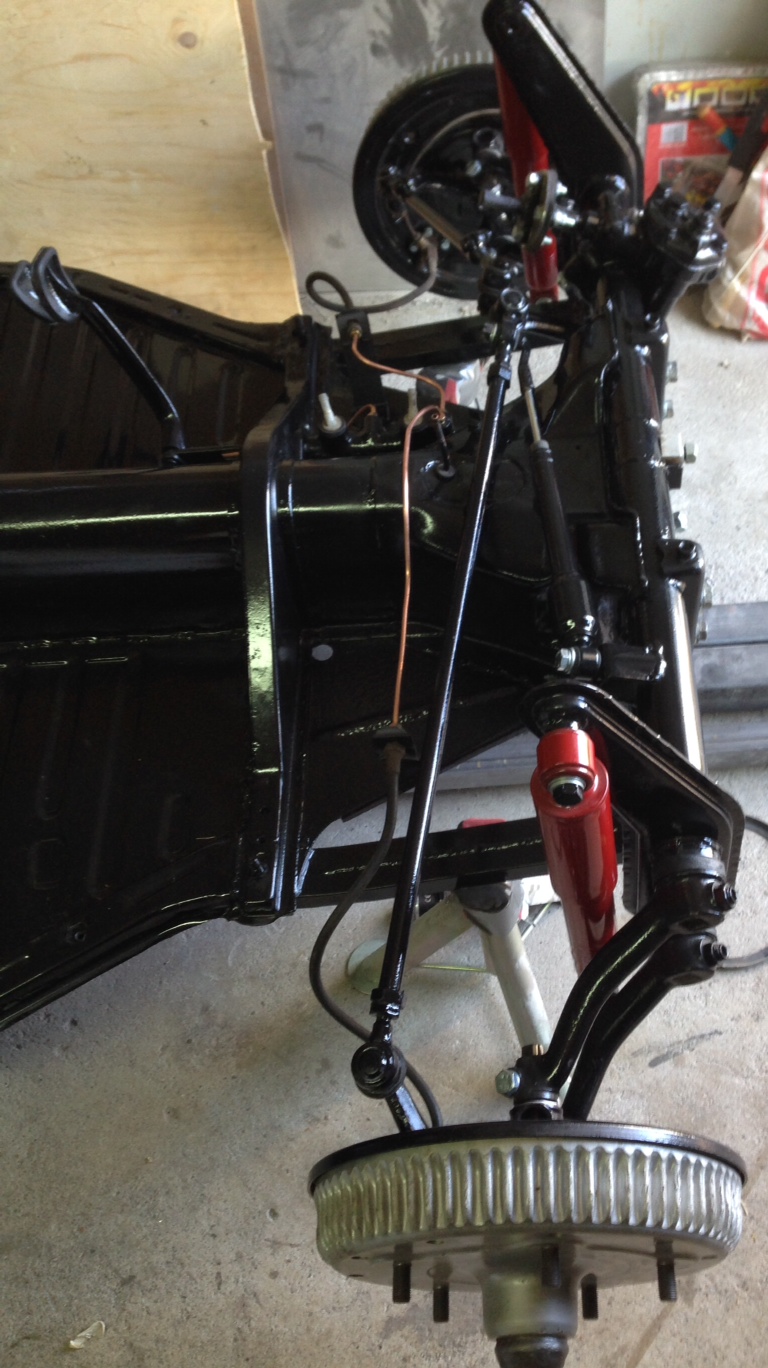Fick lite gjort idag. Framvagnen är nästan klar, bara krängningshämmaren och trummorna kvar att montera. Krängningshämmaren hade jag visst glömt att måla och trummorna ska glasblästras först.