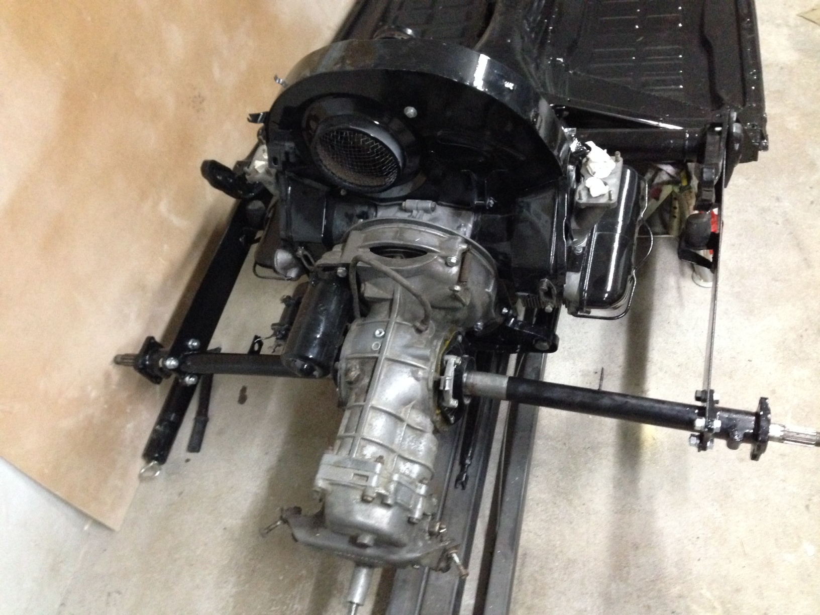 Motorn och växellådan är på plats men även här måste trummorna blästras och några små detaljer blästras och målas. Sedan måste nya bromsband limmas dit på backarna till bakbromsarna. Undrar varför man inte har fixat detta tidigare, har ju ändå vetat om det i några år och firman som jag har tänkt lämna iväg backarna till för renovering hade inte tid nu innan semestern...