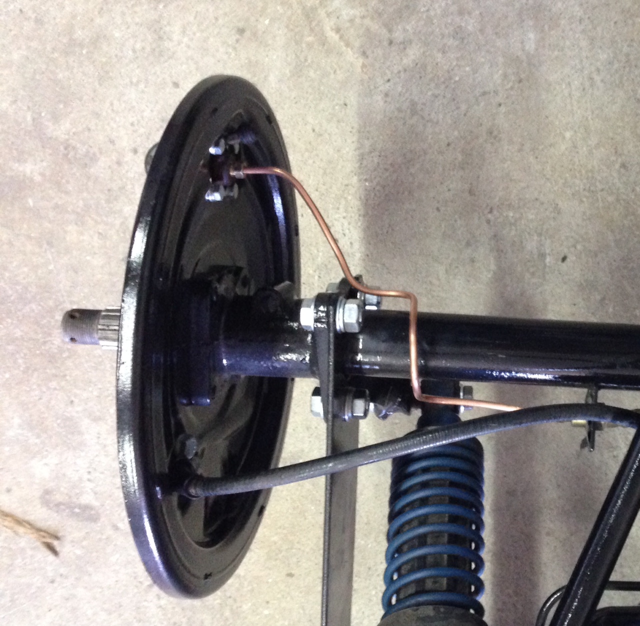 Har även monterat de främre bromstrummorna.