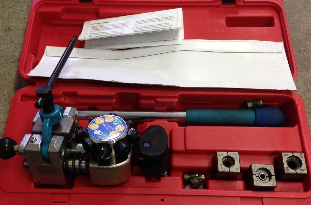 Sedan har jag tillverkat och monterat alla bromsrör. Köpte mig ett nytt dubbelkoningsverktyg, trodde aldrig att jag skulle kunna bli så nöjd med ett verktyg köpt på biltema.