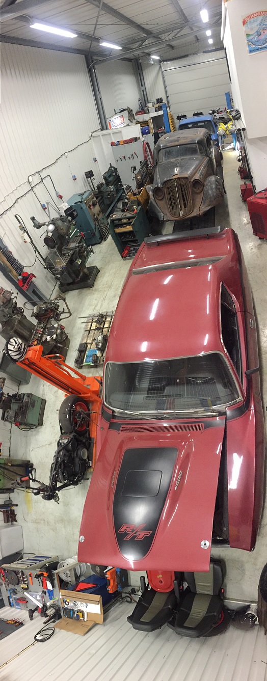 Rolig tråd , här är en bild från "mitt" garage där jag hyr in mej . Det började som en Skoda verkstad på femtiotalet men är nu ockuperat av mina tyskar samt  släktingars engelsmän