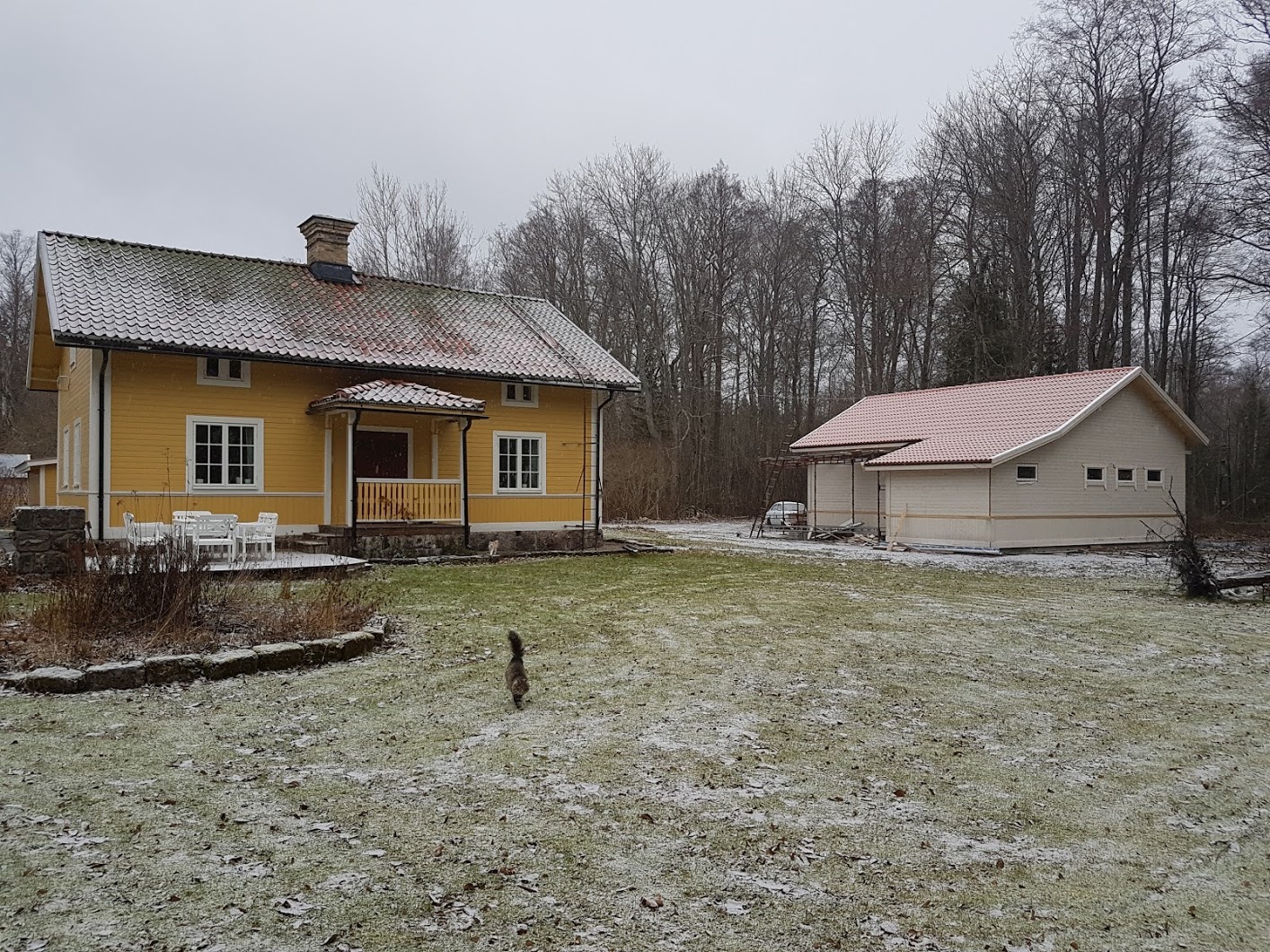 Lilla garaget är 85 kvadratmeter. Blev klart på semestern i år. Gården med det garaget skall jag sälja så fort jag hittar någon som vill köpa.