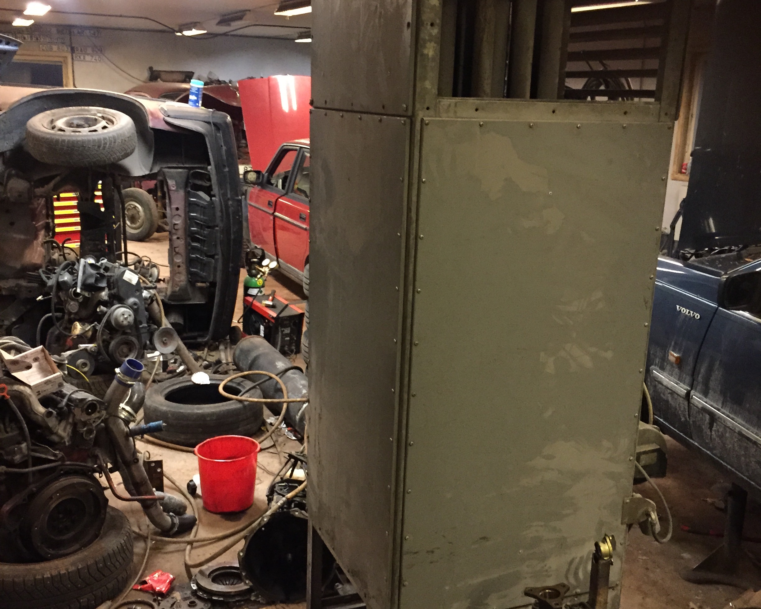 Delar garage med ett gäng stökiga volvoraggare...
