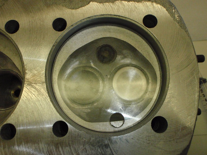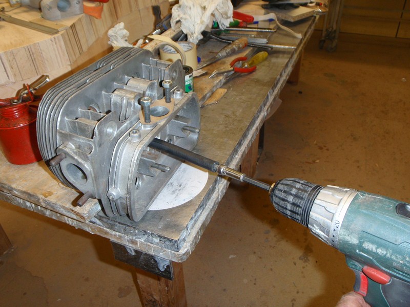 Försöker att få stiften att peka innåt förbränningsrummet som på bilden men det blir bara bra på 2 förbränningsrum, trots 2 satser stift blir resultatet lika.......det visar sig att gängan på stiften börjar på samma ställe på alla stift, så dom pekar lite åt alla håll