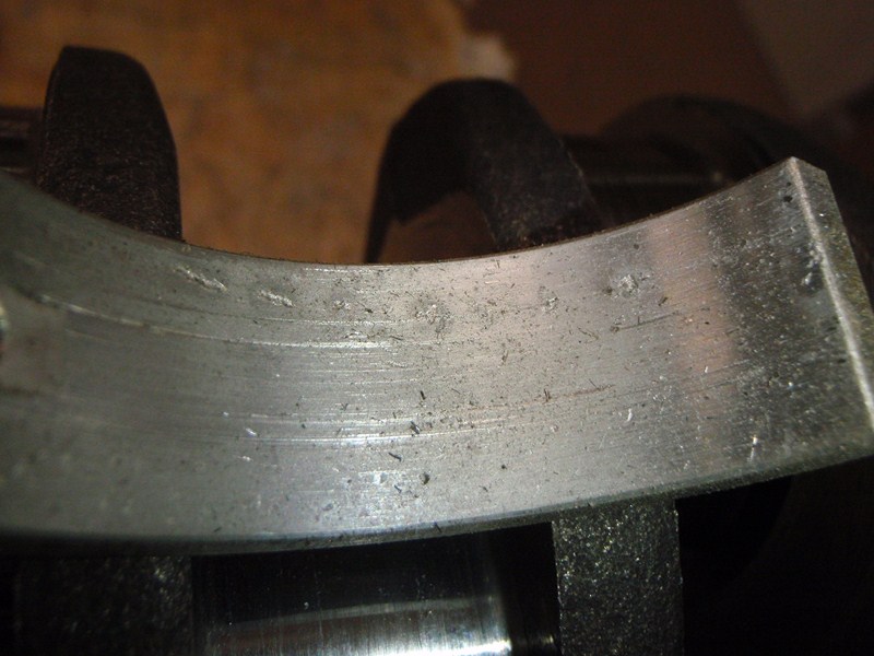 Det verkar som att Günter o gänget hade bråttom då för 55 år sen någ motorn byggdes Default/hmm . På veven så var det rejäla bearbetningsgrader vid 3 ans lager, det såg ut som att dom inte centrerad den ordentligt när dom bearbetat den. Hittade flera såna här "gradbitar" i sumpen Default/yikes , här ska de va en snygg radie ner mot lagertappen (sista bilden).