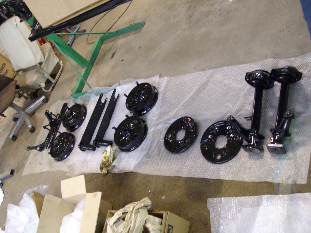 Sakta kommer det dit lite mer delar på plattan. Har även lackerat lite delar som jag inte fick med förra gången som trummorna och sköldarna och styrstagen och snäckan. Har även gått igenom hjulcylindrarna, orginal faktiskt.