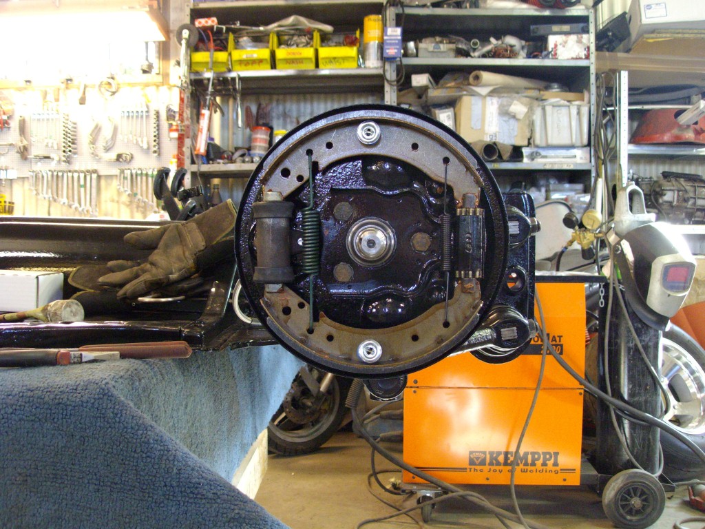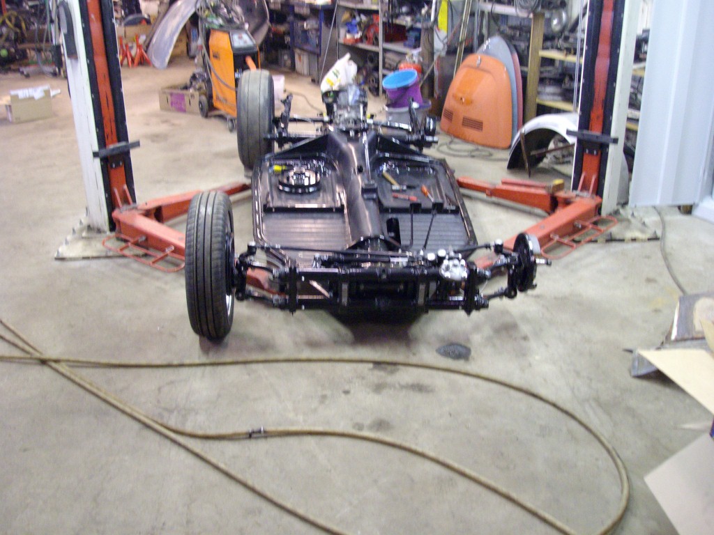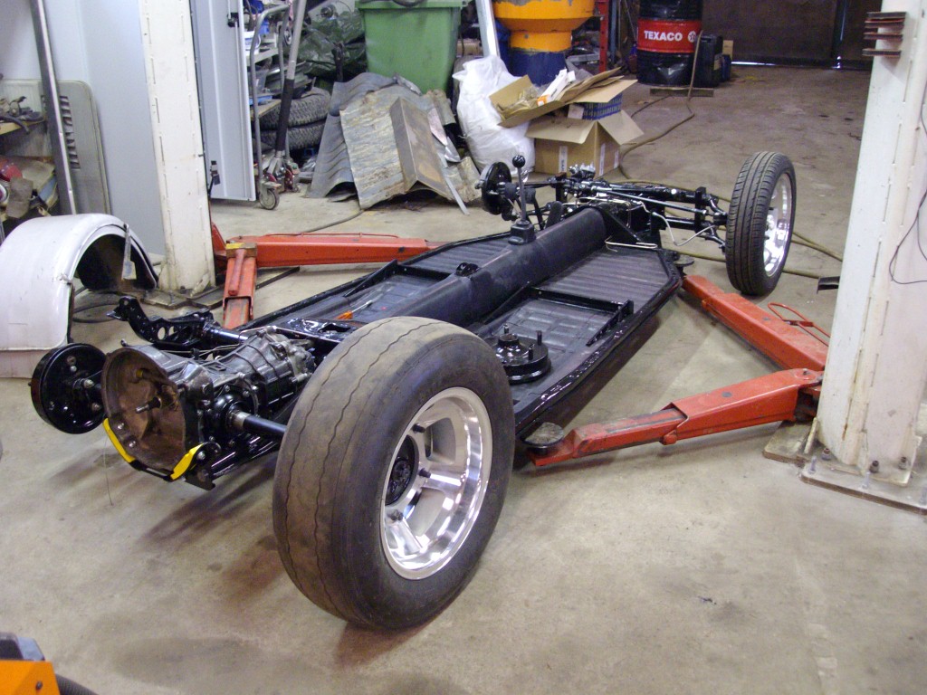 Nu står plattan på egna ben.. "hjul" Har svetsat lite i karossen inget direkt att visa bara att jag svetsat klart lite.