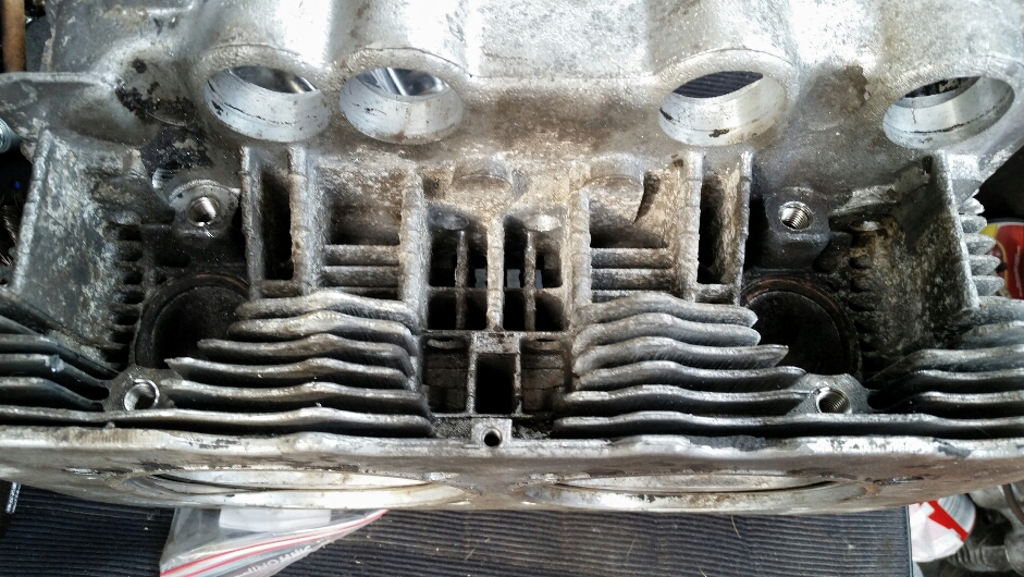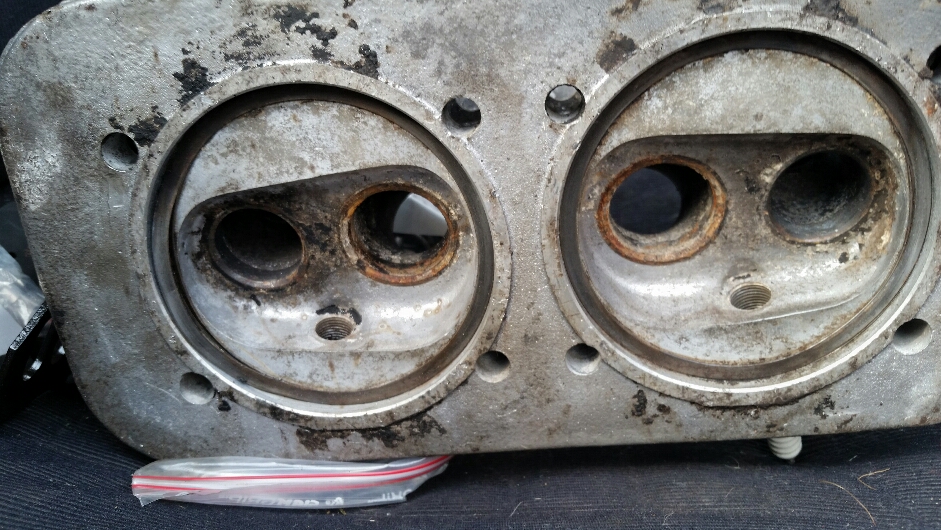 Har påbörjat topparna jag ska använda i typ 4an. Jag börja med att slå ut ventilstyrningar och skruvat ut avgaspinnbultarna (fan inte smidigt..) har sedan gänga i m8 insatser då jag tyckte nya m9-m8 pinnbultar va för dyra..