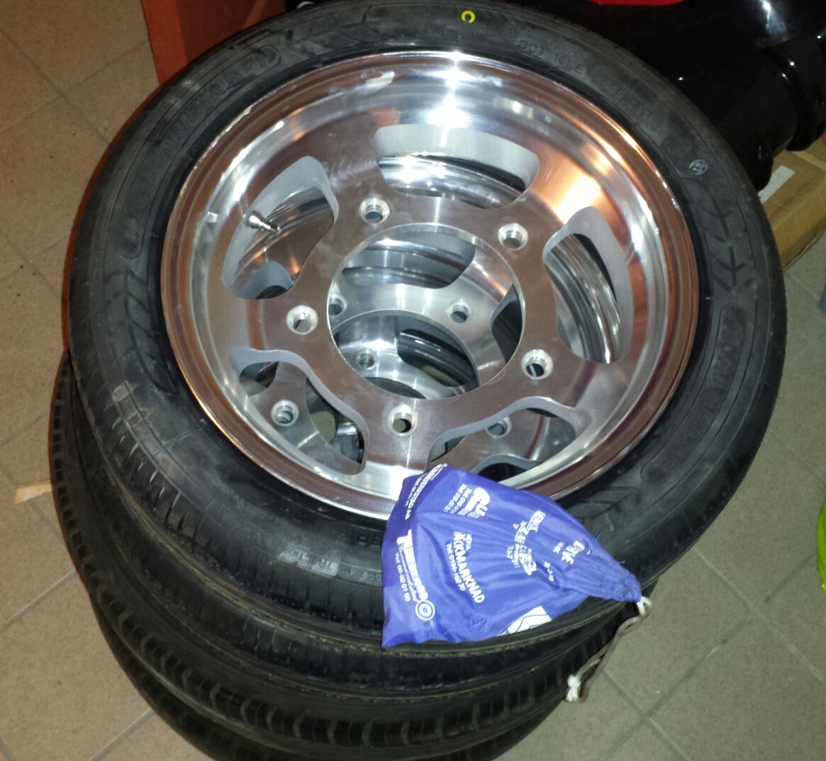 Däremot är däcken nu monterade, bakfälgarna mäter 7", fast det står 6,5" på insidan.