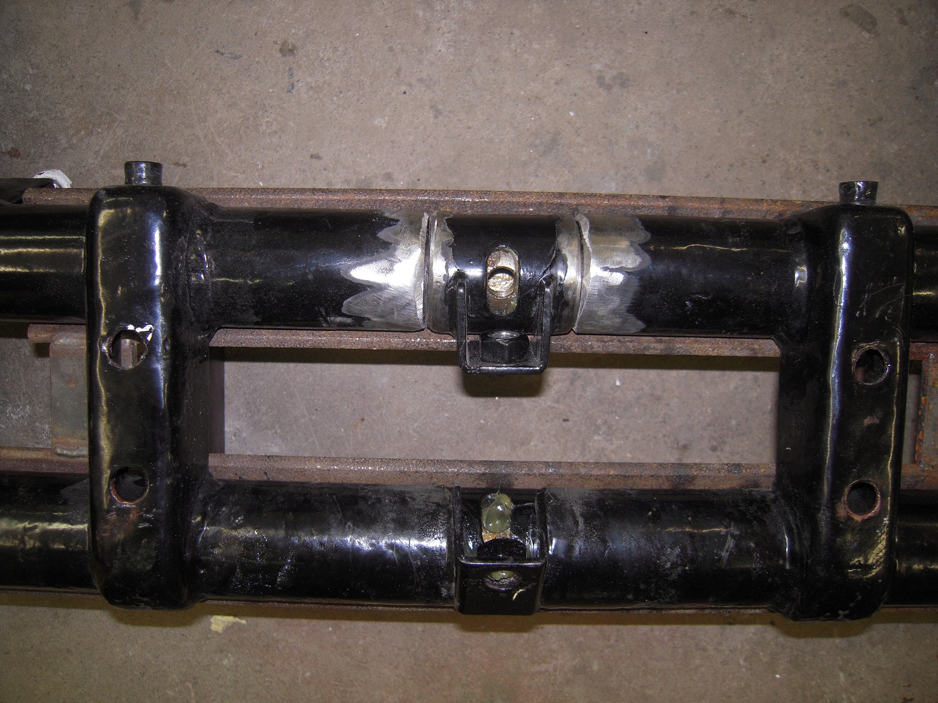 Tanken var att ha dom svetsade som orginal å bara kunna finjustera höjden med dom eftersom jag inte har kortat framvagnen nåt, nånstans för ett par år sedan då ja svetsade detta så snurrade jag tydligen till det...