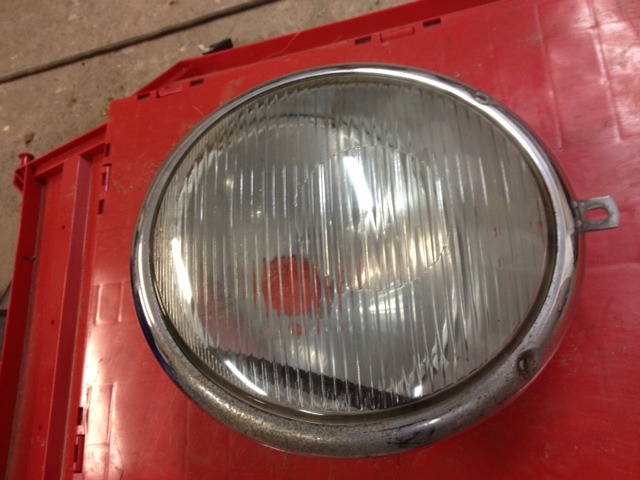 Splittbuss framlykta. Helt ok skick på reflektorn. Lite smånopprigt krom.
