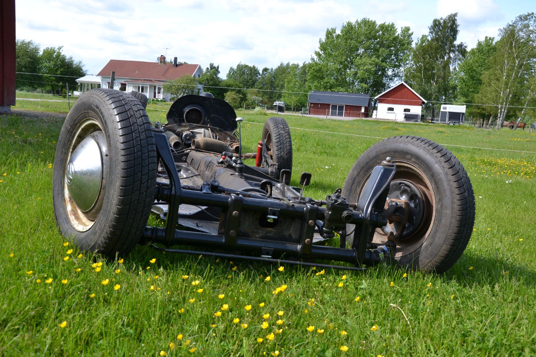 så nu har vi anlänt i nutid detta projekt. motorn och växellåda är ru, ska byta bromsrör, huvudbromscylinder, meka till breda fälgar i bak m.m.  ICQ/ag