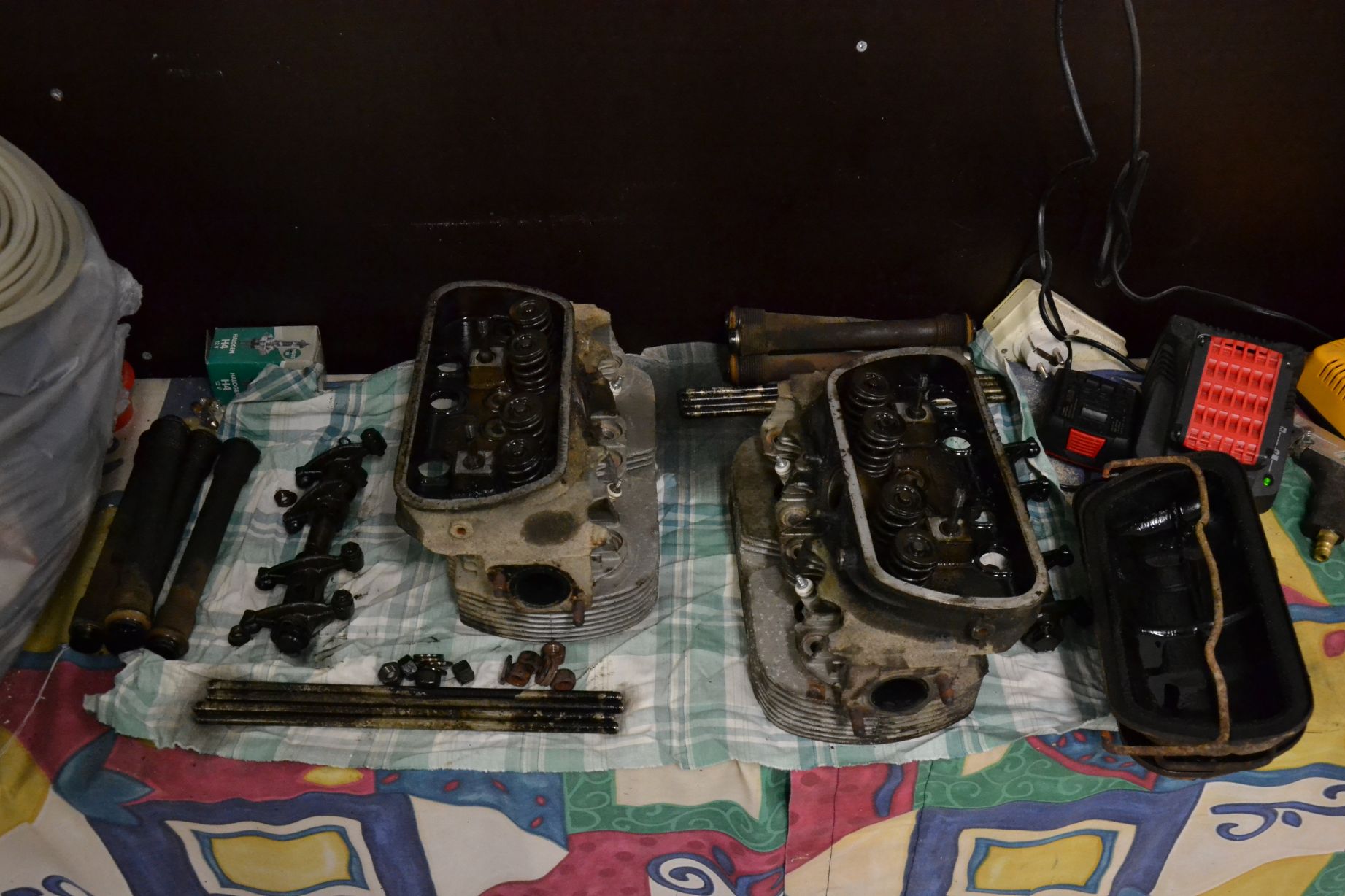rivit isär motorn för byte av kolvringar å topprenovering m.m.
