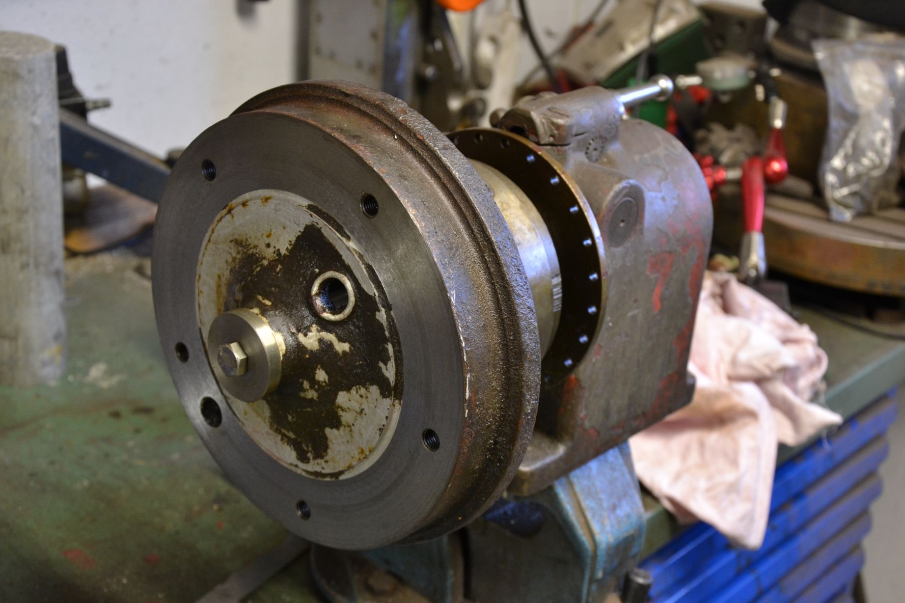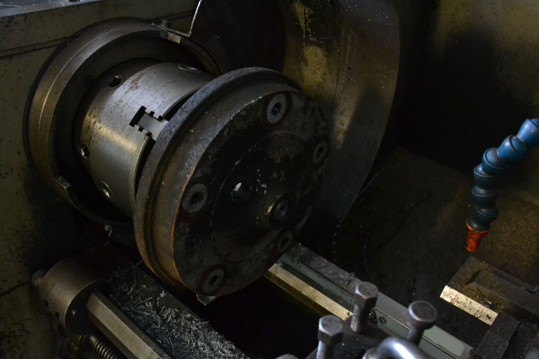 men först ska måste ja ha en balanserings-jigg så jag kan balansera fälgarna, börjar då med att svarva till en adapter så jag kan spänna upp en vw bromstrumma på svarven å jiggen  ICQ/ag