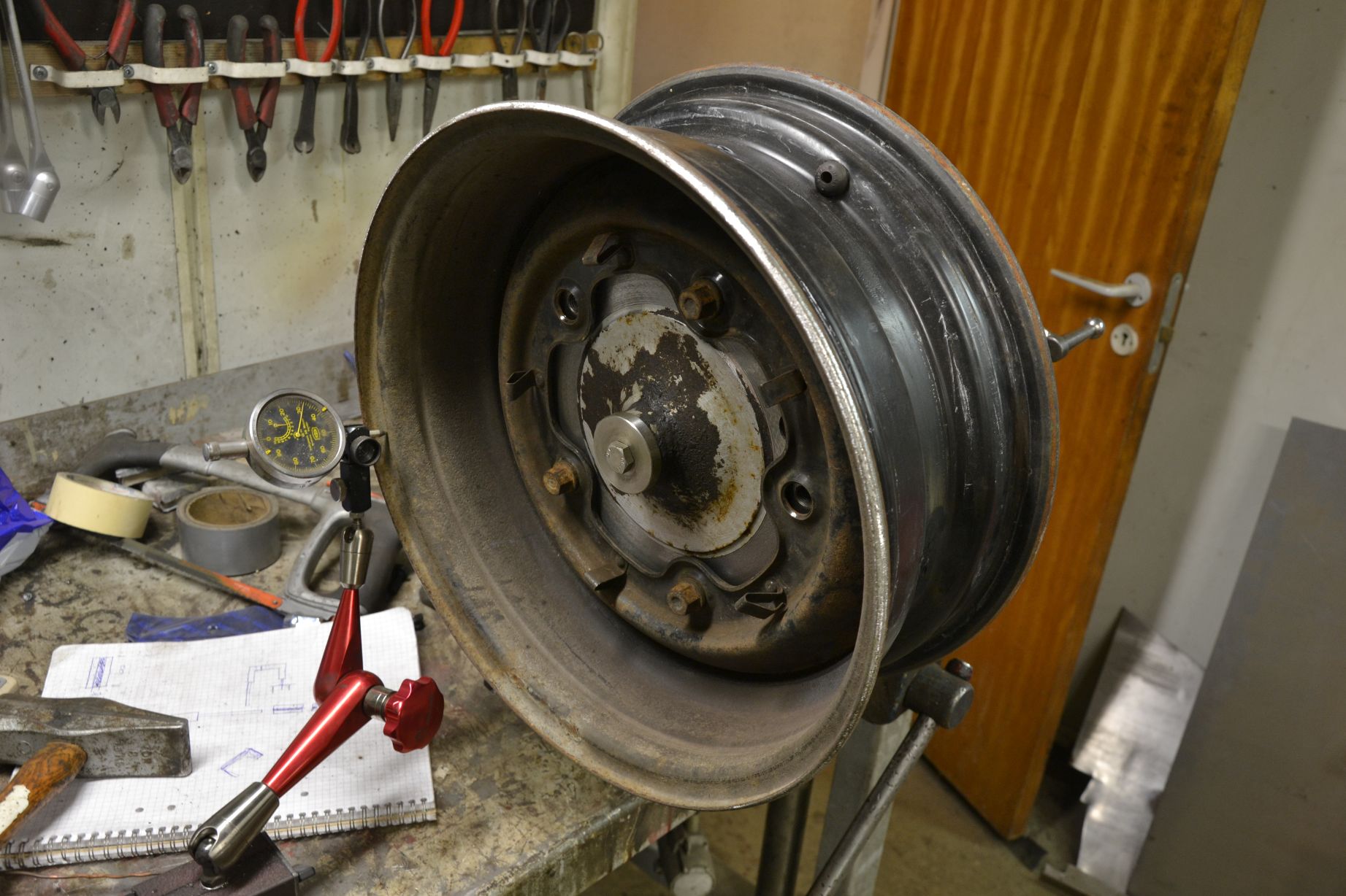 så nu var det dags att börja lite med bakfälgarna, ja gör så som kanske många vet att en volvo-fälgbana å trycker i vw-navet. ICQ/af
