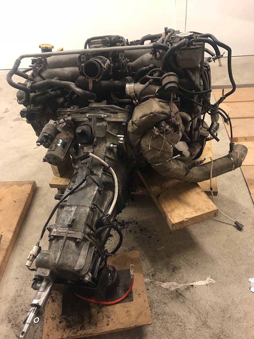 Han med 2 uttagningar av motorn. Kopplingsbyte och växellådfix. Splins på skivbroms som gav upp. Lite bränslepumpsstrul som resulterade i 2 otroligt fina hål i motorhyllan