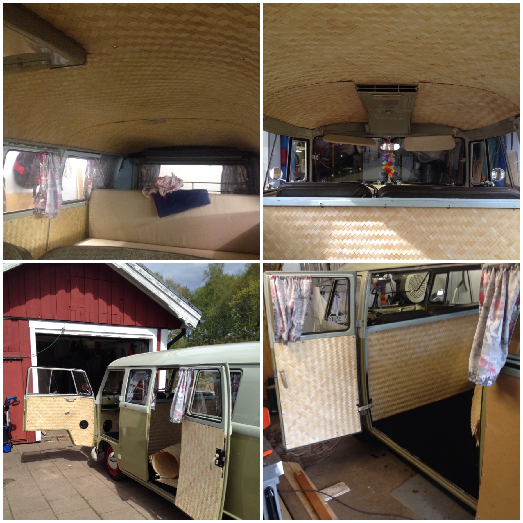 Har länge funderat på olika varianter på innertak men inte riktigt orkat dra igång nått men var in på Rusta häromdagen där dom sålde ut bambumattor och kom på Dalkarls bay tråd där han klämde upp sådana i taket, inte så kul att härmas men det kändes ändå så enkelt även om han i tråden nämnde att det var betydligt drygare än han trott så jag trotsade hans varningar om att börja med det och knåpade upp det på två eftermiddagar, flera kompromisser och lite halvdant men det sitter där och lite mysigare och tystare blev bussen