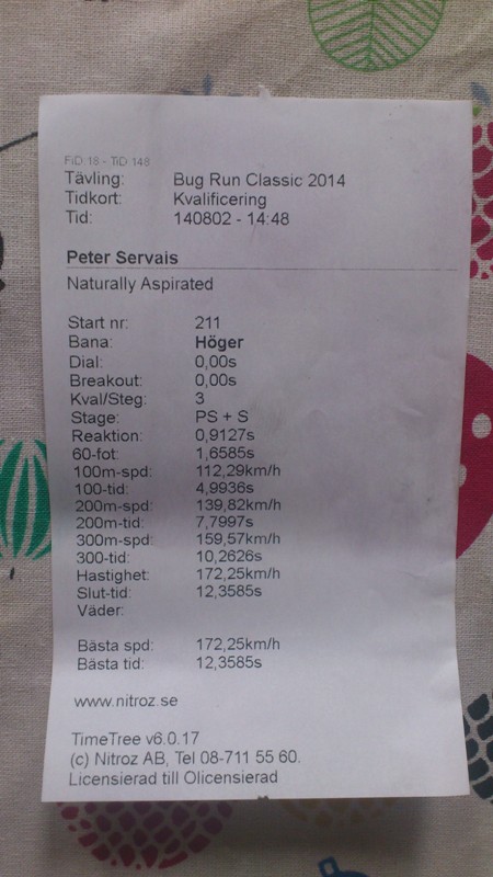Med 30 minuter kvar av kvalet (ca 14:30) ville jag testa en repa till och gick upp ytterligare ett steg till i huvudmunstycke. I samma veva fick jag veta att bilen vunnit första pris i Callook klassen och att prisutdelningen skulle vara direkt efter kvalet slutade kl. 15.
