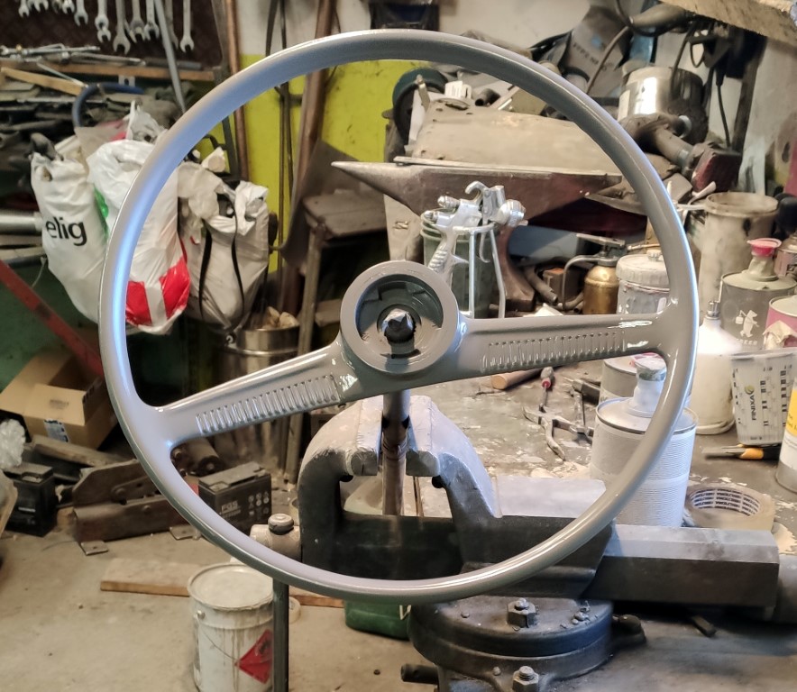 Idag blev det rattstångsrör, ratt, blinkersspak plus tutknappsmontering. Tog sin lilla tid.