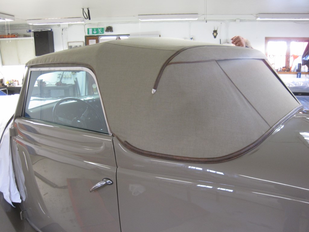 Minns själv när jag brottades med dessa frågor när jag renoverade min cab. Tror det är svårt att få en färdigsydd sufflett att passa perfekt på dessa tidiga cabbar utan justering. Hade två färdigsygga (en amerikansk och en av okänt ursprung) som båda var för små och inte räckte. Blev att sadelmakaren sydde en egen sufflett.