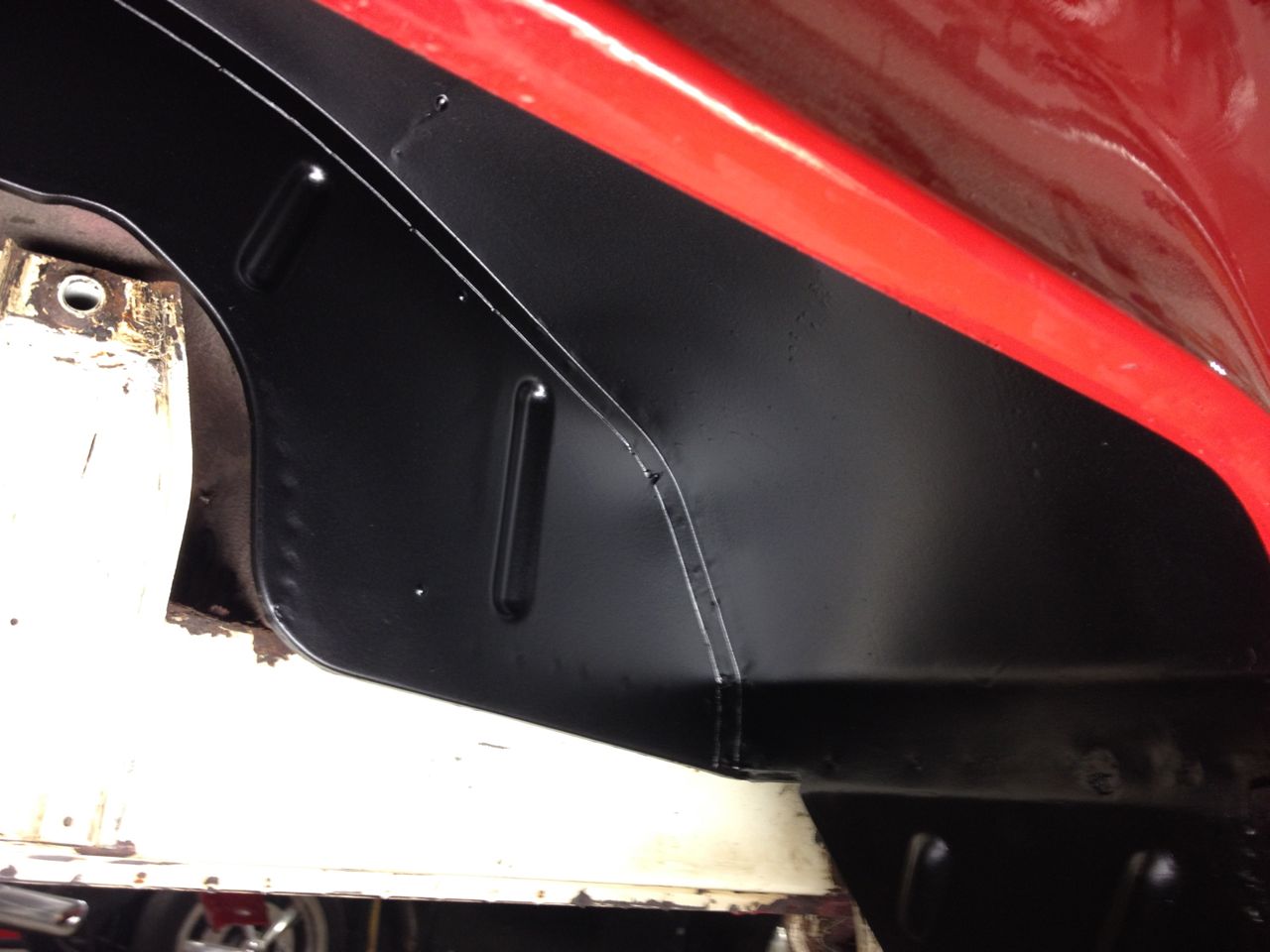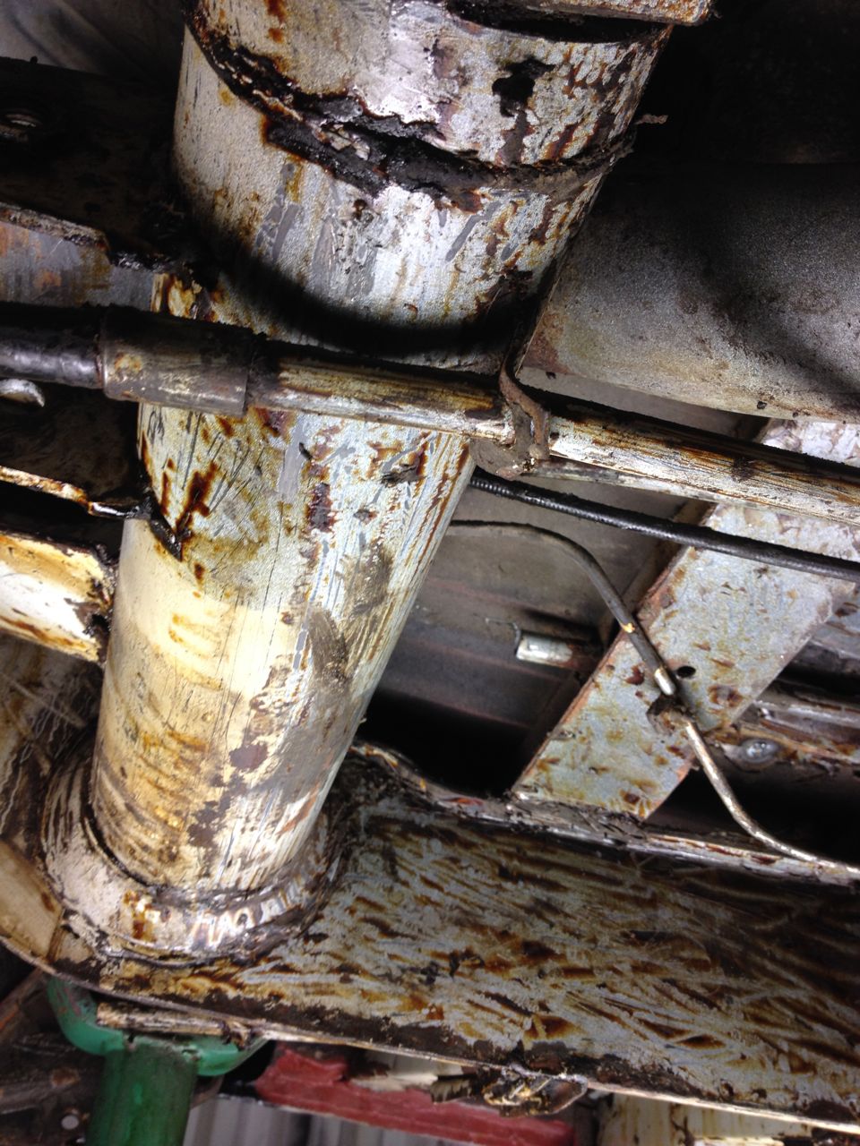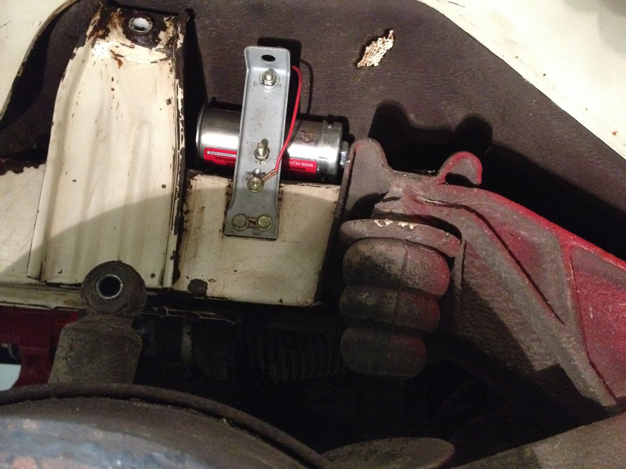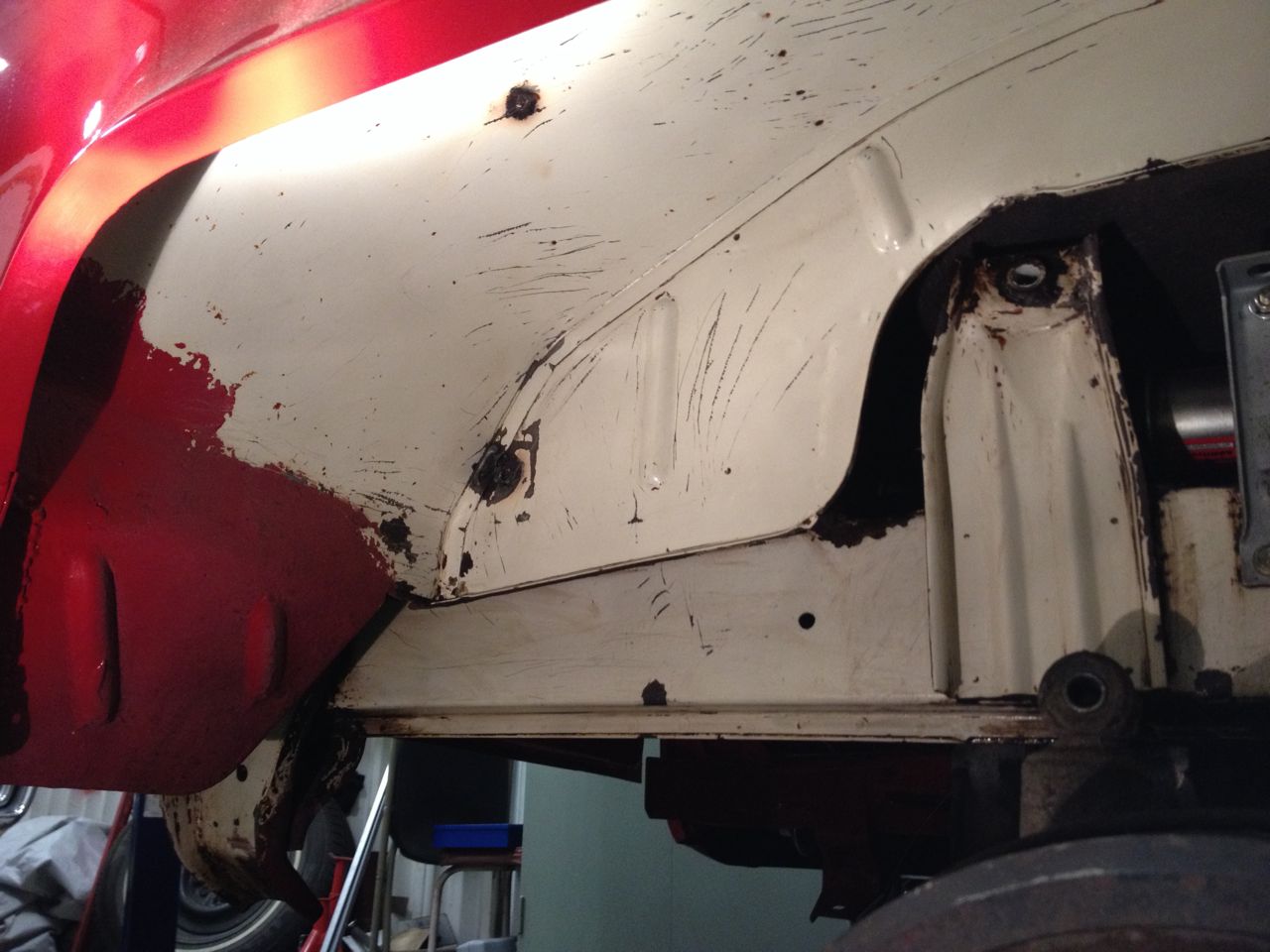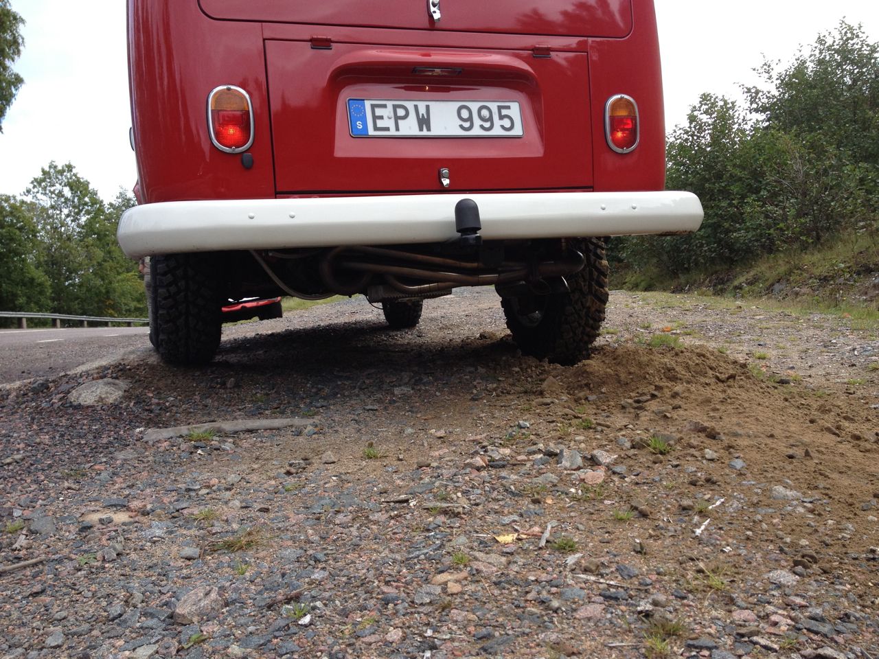 3. Låter Helv-e... Pythondämparen är vinklad ner mot marken, och detta gör att det låter ordentligt inne i bussen, inte kul att åka på semester och att alla måste ha hörselskydd... så, planen är att flytta upp dämparen i hjulhuset och att låta slutröret gå ut genom bakkofångaren a la 4X4 baywindowprototypen, eller om fegisen i en får bestämma komma ut under kofångaren...