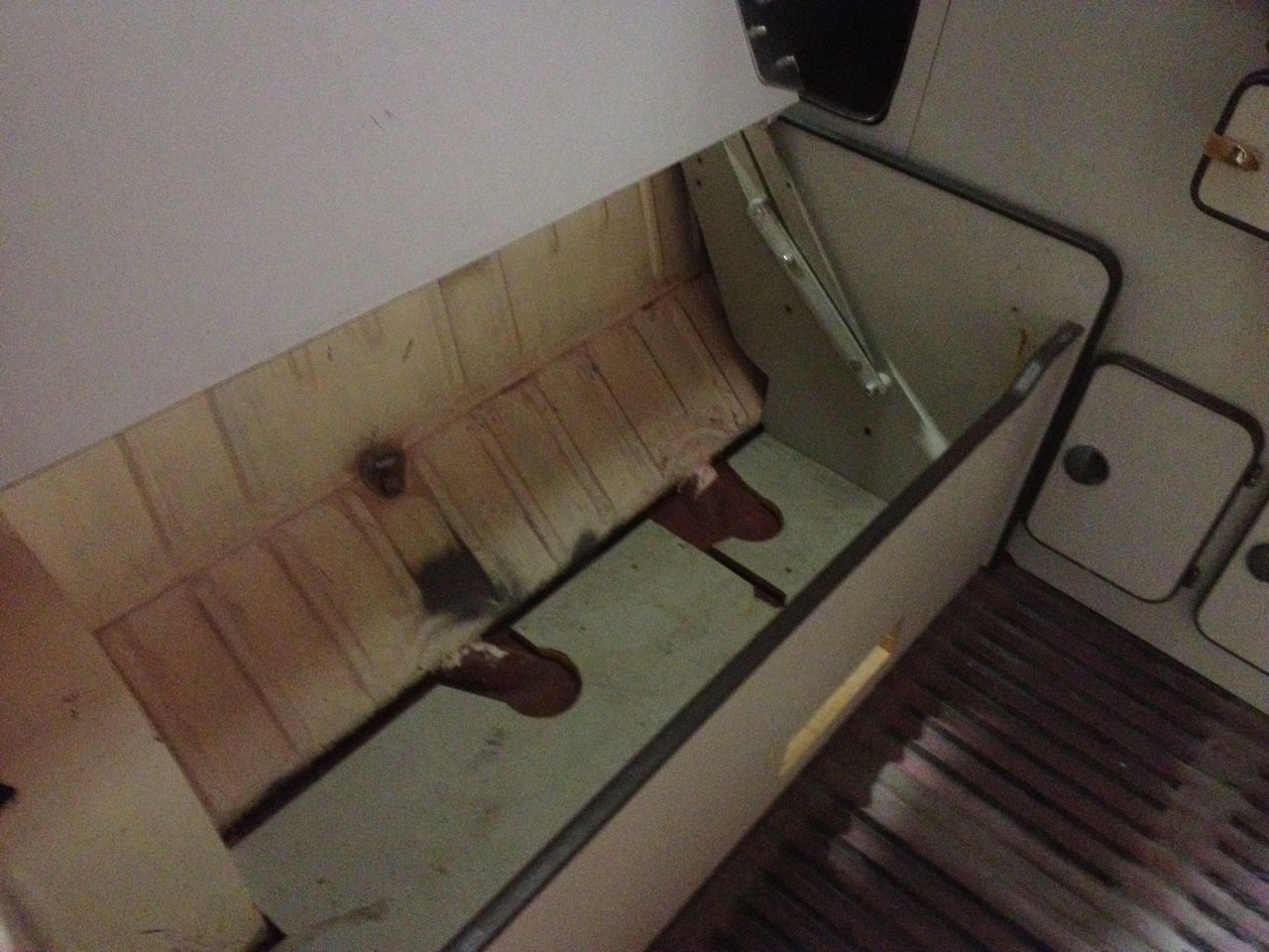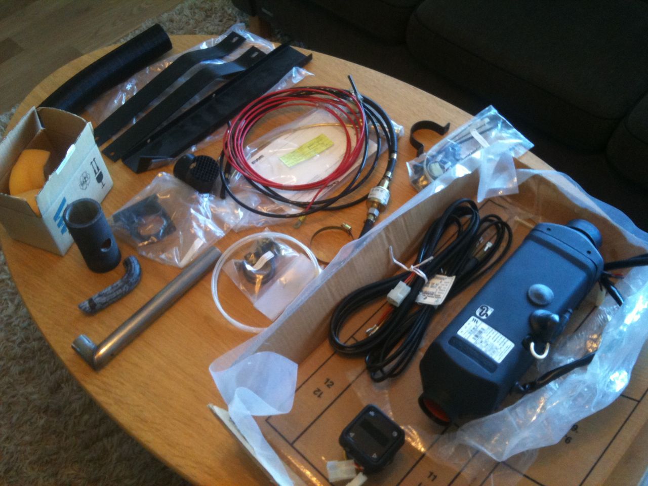 Tänkte sätta den över batteriet på vänstersidan där reservhjulsbaljan har suttit innan(borttagen numera...) Den låter väl minst i motorutrymmet. En slang fram till under fällbara sängen att värma utrymmet bak och en fram att värma kupen. Får se om det går att sätta ett spjäll vid tanken kopplad till den gamla Ebervajern som är under framsätet och går till det gamla värmarspjället.
