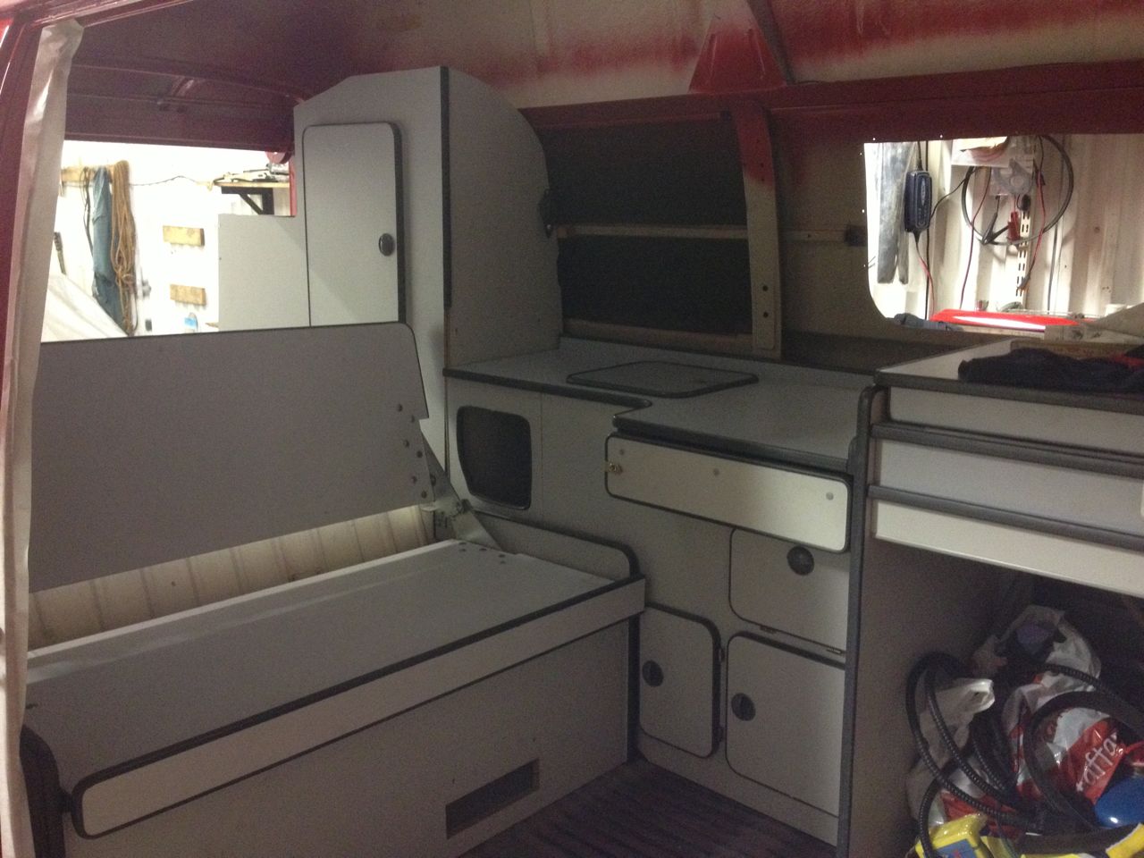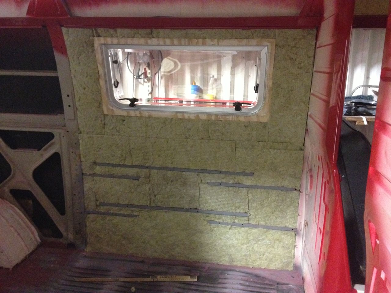 Utöver detta kommer gälade plåtar sitta i ruthålen i framdörrarna när lillen sover i hängmattan över framsätena, och bensinvärmaren kommer att trycka in luft på ett par tre ställen, så det blir till att ljudisolera så inte värmaren håller en vaken...