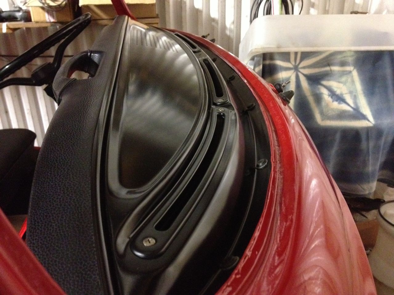 tanklocksluckan är på plats. Håller på att göra ren de gamla etiketterna från färg, men ett för den nya värmaren fick ju hamna på plats i alla fall. Dom snålade lite med färgen inne i hålet vid tankpåfyllningen så jag får pensla i lite röd färg längre fram när det inte är 5 plusgrader i garaget.