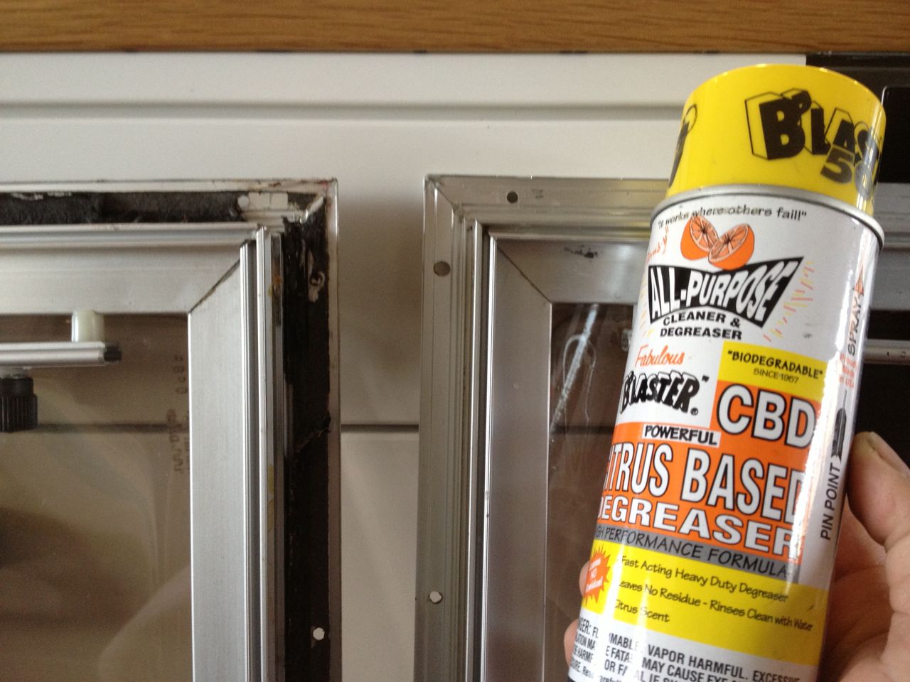 Startade dagen med att ta bort lim och fogrester från fönstret som suttit på vänstersidan. tog tre timmar av förmiddagen i anspråk. Använde ett citrusmedel liknande 3M Citrus cleaner. Helt suveränt. löser upp allt på ett kick. Det som tog sån tid var siliconen som var kläggatrunt de nitton (19) hålen. Gick att skava bort med Hemmakvälls plastkort ICQ/ag .