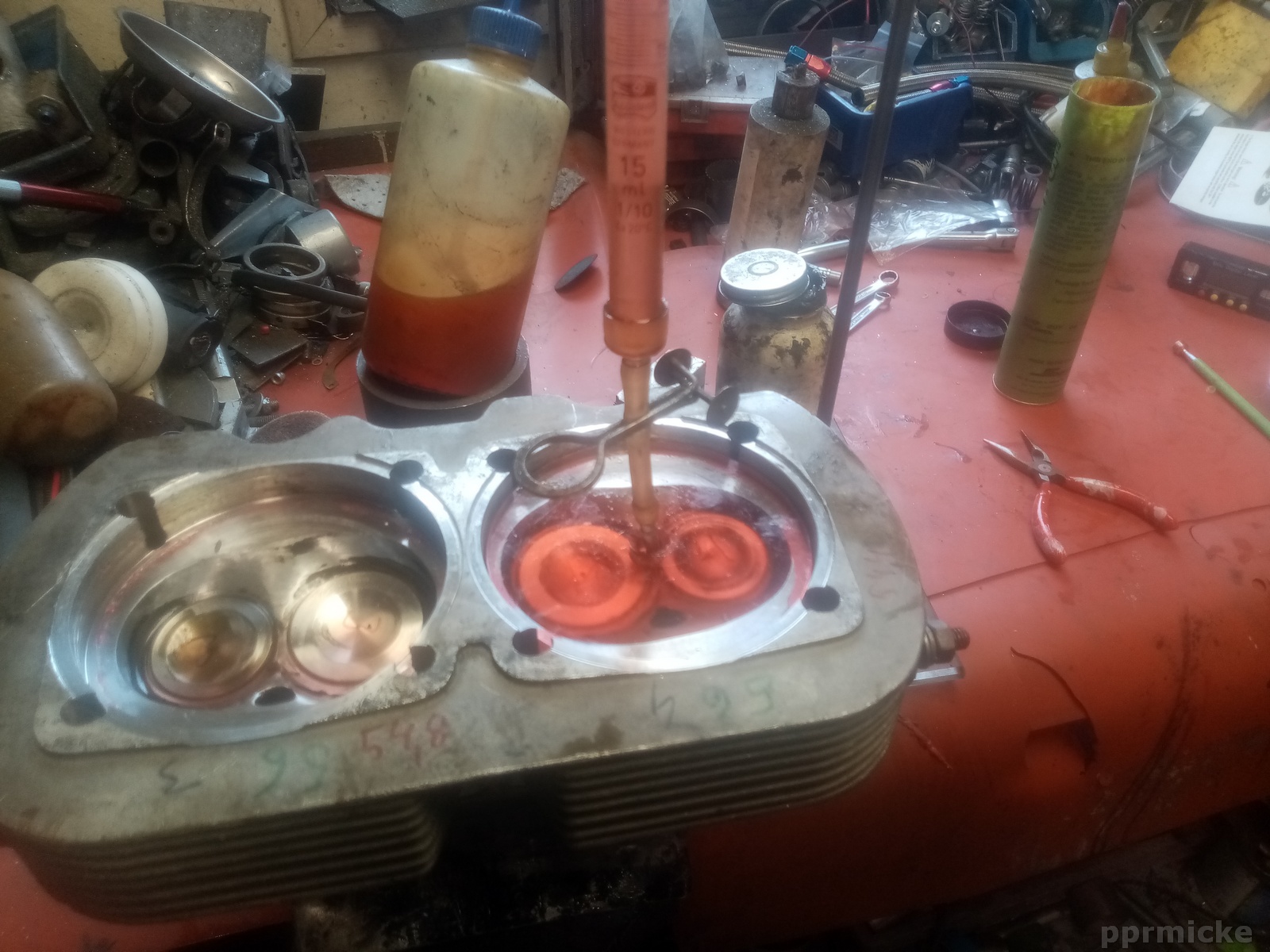 efter som topparna är planade(0.20 mm) för dom skall bli täta mot cylindrarna så får man kolla upp volymen igen