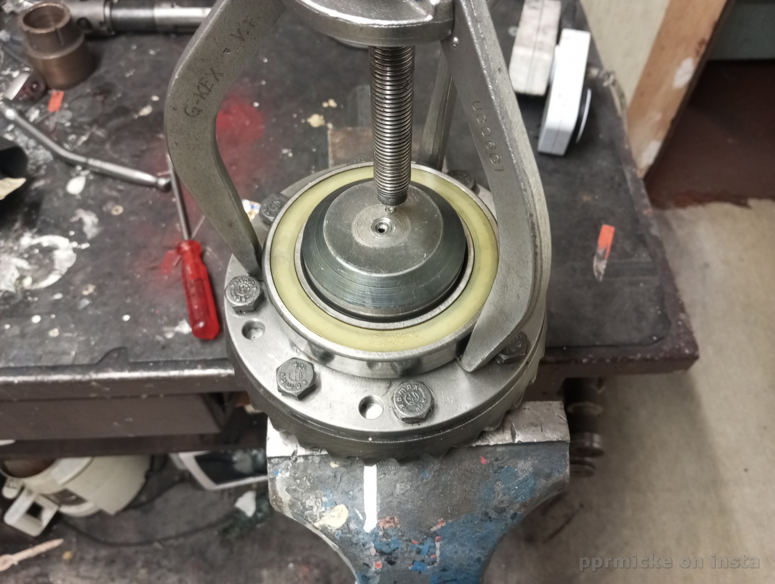 Den värms upp till cirka 90 g C  så är det lätt Men det skall schimsas till rätt bredd mot kronhjulet Schimsen är det skillnad med 0.02 mm så man måste  ha ett gäng Sen får man låta diffen kallna så testa sen gör man det lika dant på andra sidan ( man har ett  specialverktyg som man kan flytta diffen i sidled och det är även ett mätverktyg )