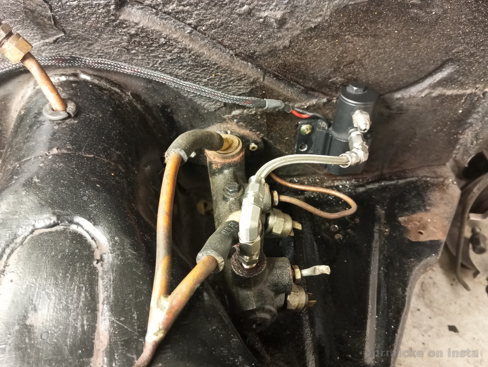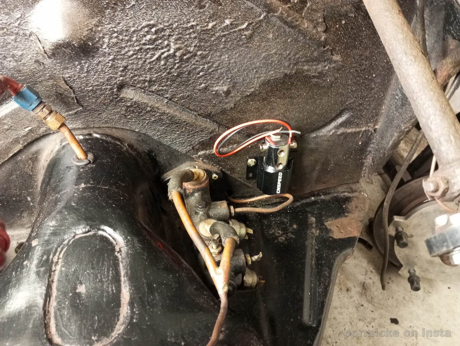 Det fick byggas in en linelock ventil så man kan ha båda fötterna på gas o koppling med låsta framhjul vid ett trafik ljus