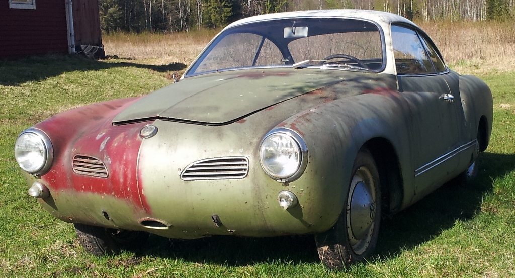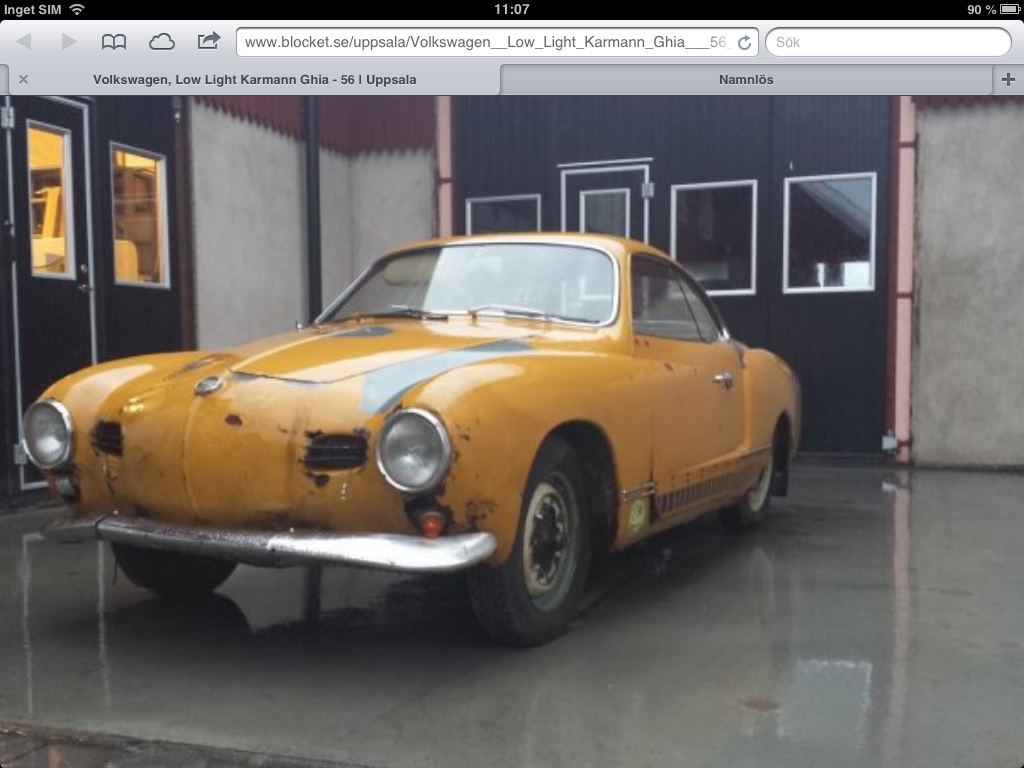 Denna är  en  - 63 coupe som ska göras iordning åt min fästmö som INTE ALLS gillar hobbybilar, men efter 15 år ihop förtjänar hon nåt.... å då jag visadee en bild på en  omgjord Ghia  sa hon: Sån kan jag  tänka mig!!  så nu har vi en förebild och en bil....om några år  är den klar.