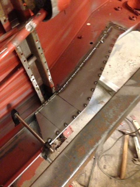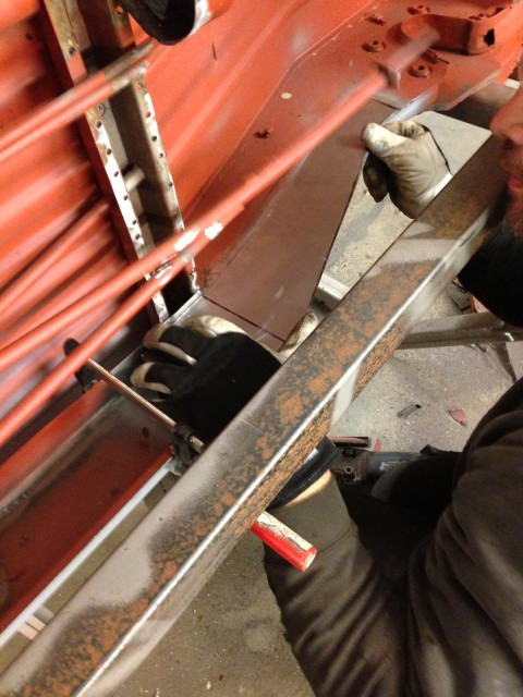 Det som var på programmet,var att fortsätta med främre tvärbalken. Men först skulle det lagas lite lock på rambalkerna.
