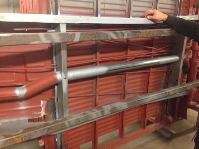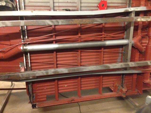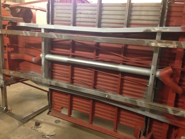 Med båda locken svetsat slipat och primered, var det dax för främre tvärbalken och värmeröret.