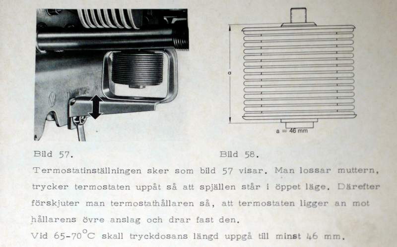 Sen är det bra om man "kokat" bälgen först så att man vet att den är rätt och hel. vid 65-70C skall den vara minst 46mm från montagefläns-montagefläns.